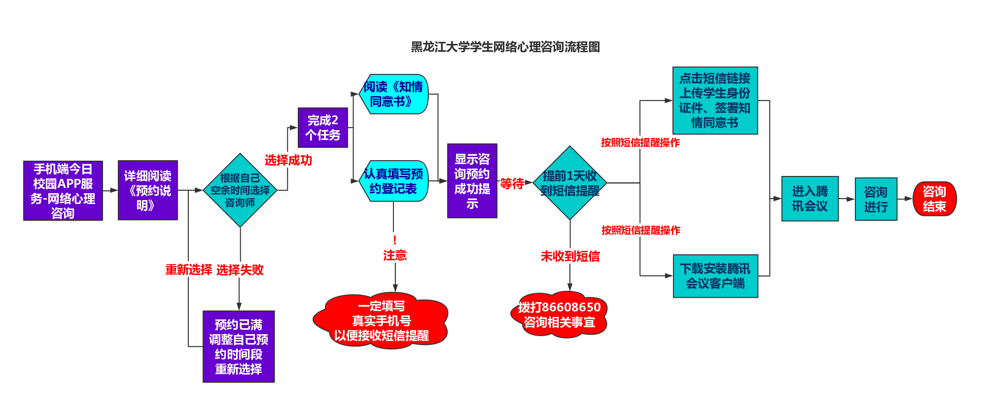 同学们可通过“今日校园APP”-网络心理咨询进行网络咨询预约,流程如下图(点击可放大):