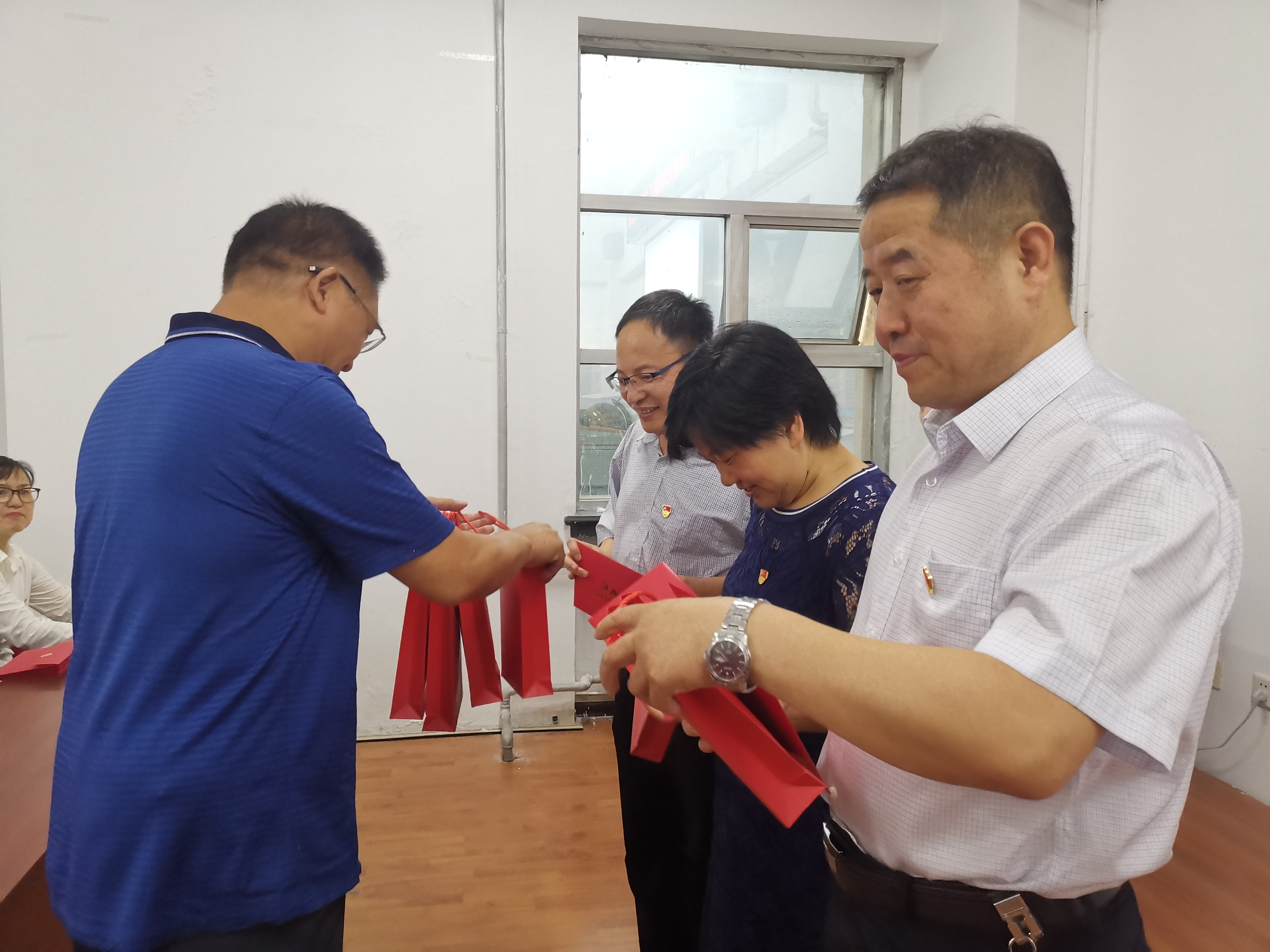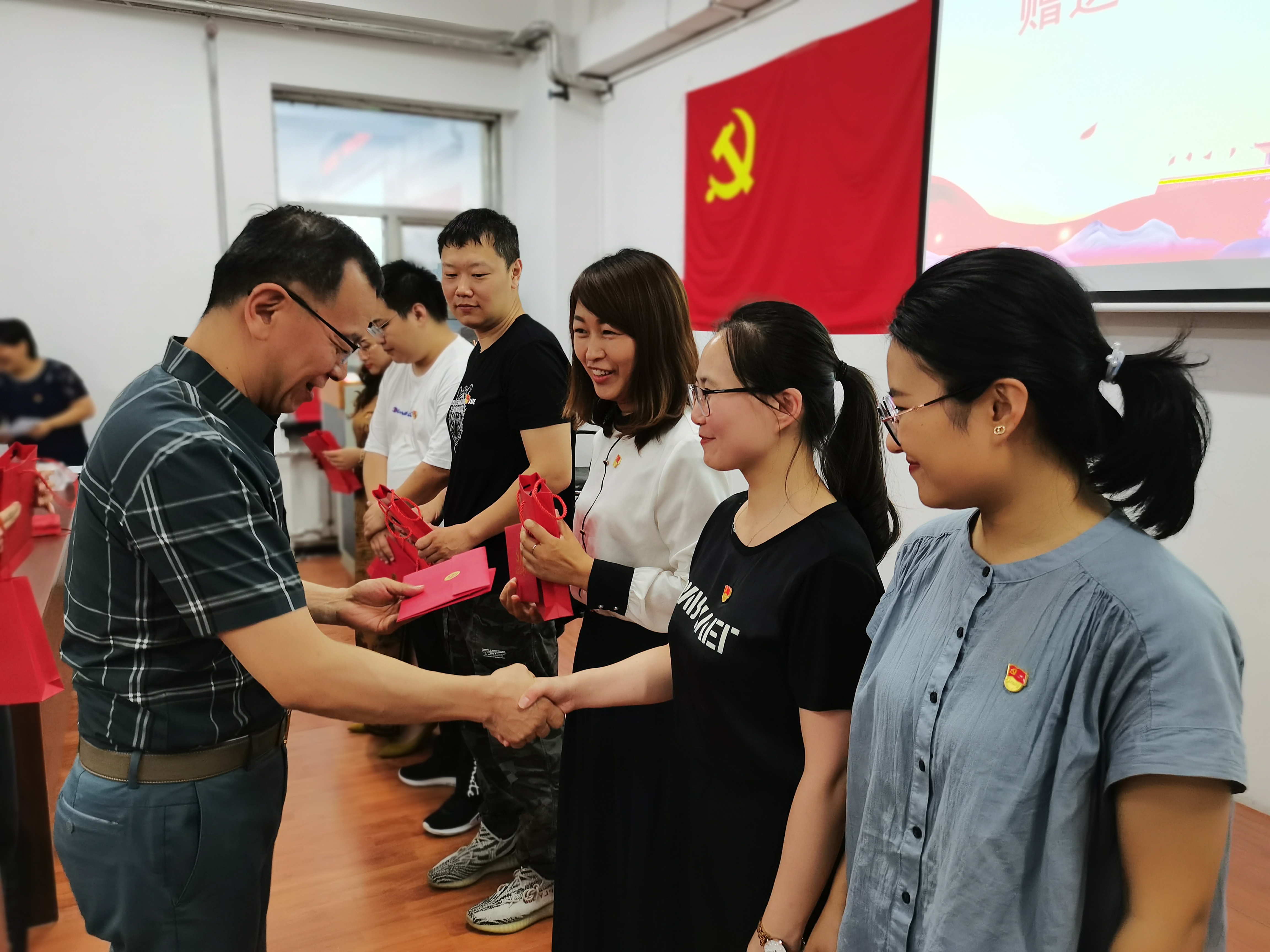 活动中,51视频还为部分党员同志过了“政治生日”,由柴文华、李楠明、孙庆斌三位老党员为每一位入党日期为上半年的教师党员赠送了特制的政治生日贺卡和礼物,贺卡上准确地记录着每一位党员的入党日期,在党年龄,时刻提醒大家要牢记党员身份,践行党的初心使命;赠送给党员的签字笔上清晰地印有“为党育人 为国育才”八个大字,寓意全体教师党员将以高度的责任感与使命感落实立德树人根本任务,作育英才,为党和国家培养和输送合格的建设者和接班人。