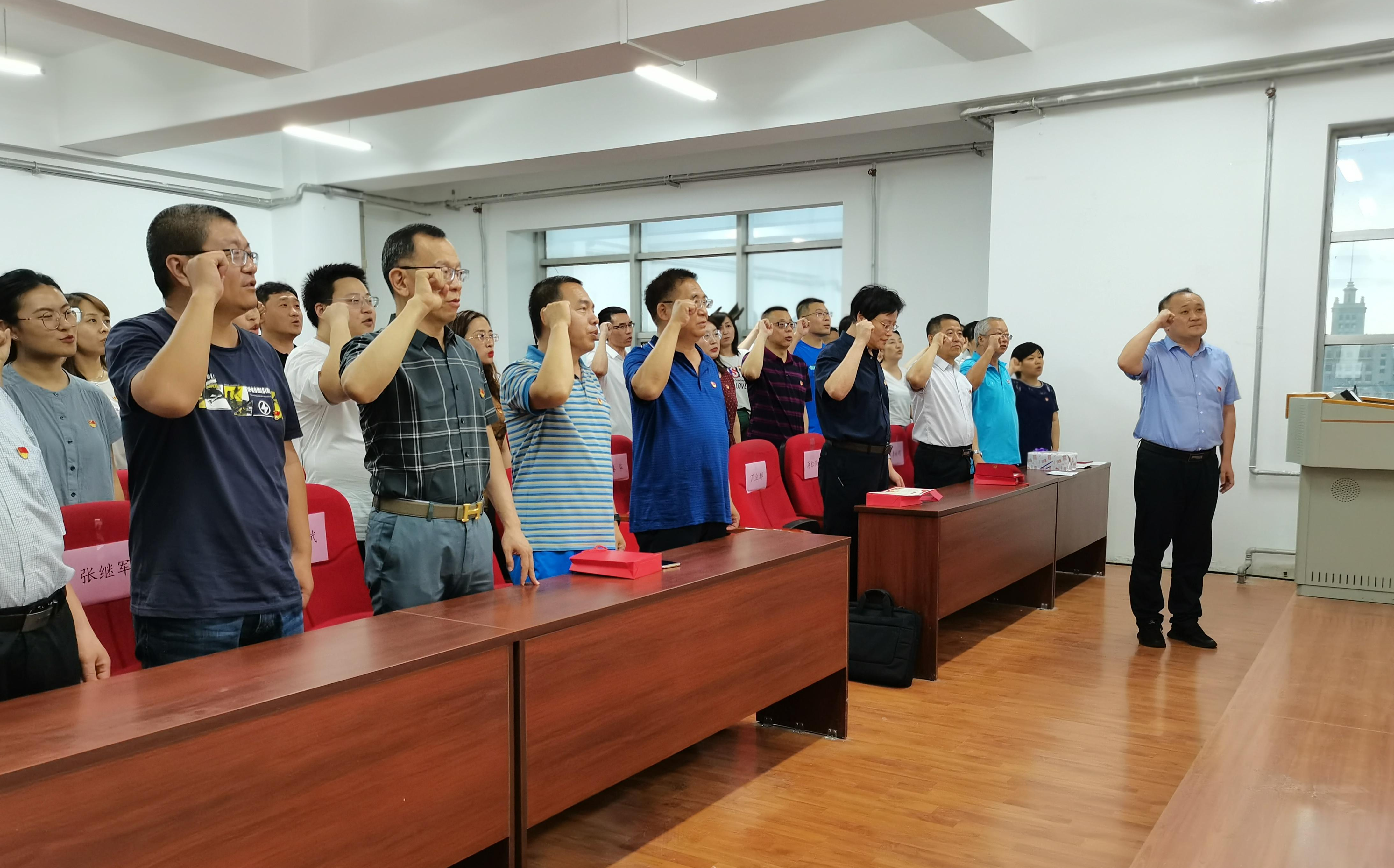 在热烈的氛围下,蒋红雨院长作为领誓人,带领大家重温入党誓词。铿锵有力的誓词,表达了党员们不忘来时路、砥砺前行的坚定信念。