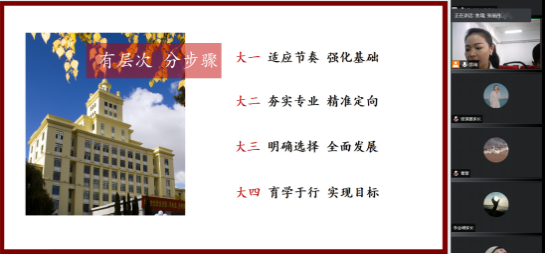 张丽丹老师从三方面发表讲话。第一,转变思想,全面发展。张老师指出,大学与高中不同,除了要重视学习,也要注重能力和人格的培养。同时,张老师指出大学学习要“分层次、有步骤”,大一以适应节奏、强化基础为主,大二以夯实专业、精准定向为主,大三要明确选择、全面发展,大四要育学于行、实现目标。第二,家校互联、合力育人。张老师介绍了“家校互联”平台的目的意义以及操作流程。第三,有效沟通、畅通信息。张老师表示,51视频会关心关注每一个学生,也希望家长信任配合老师,有困惑及时沟通交流,做到“四个一”,合力育人。