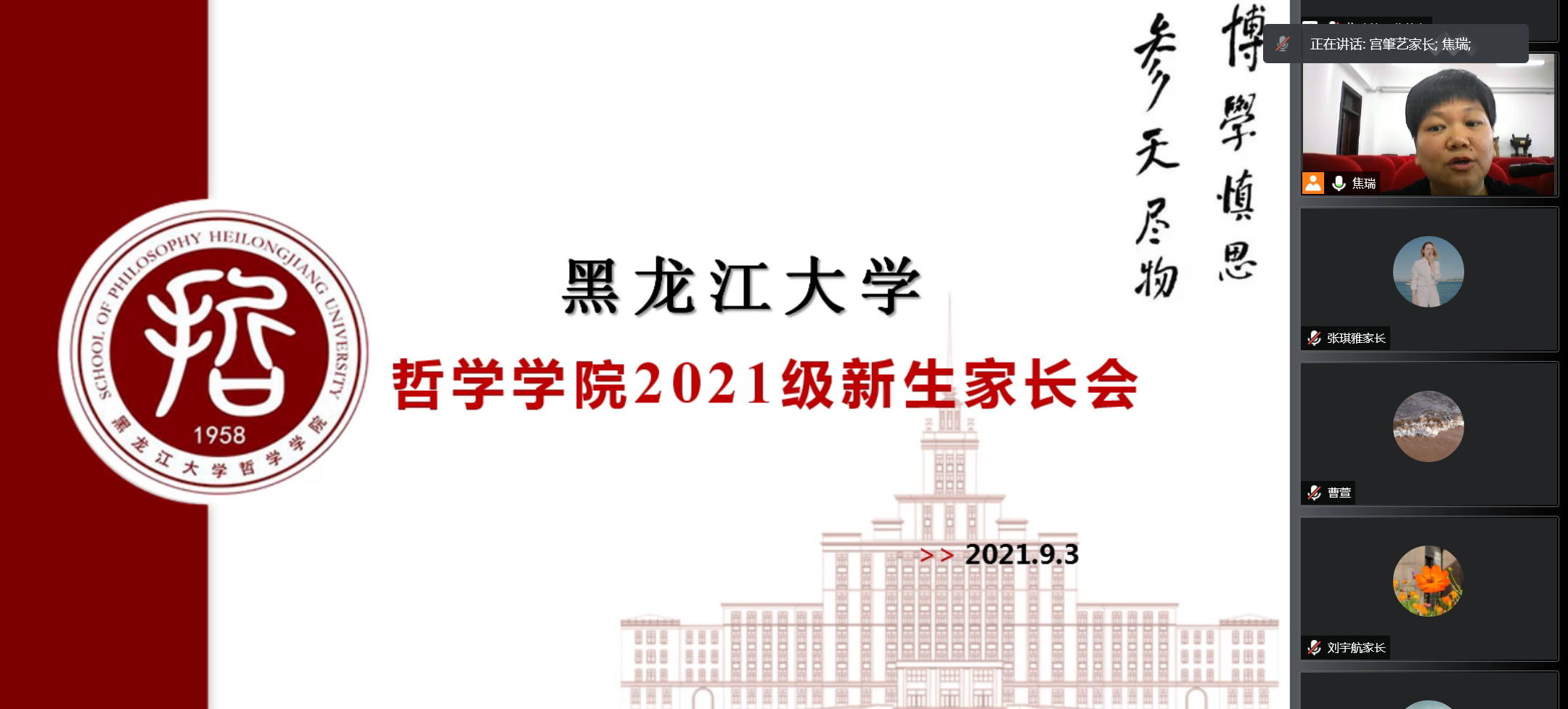 于2021年9月3日15:40,线上召开了2021级新生家长会。会议由党总支副书记张丽丹主持,党总支书记孙美晖、院长蒋红雨、副院长周来顺、副院长高来源、新生辅导员焦瑞出席会议,2021级新生家长参加会议。
