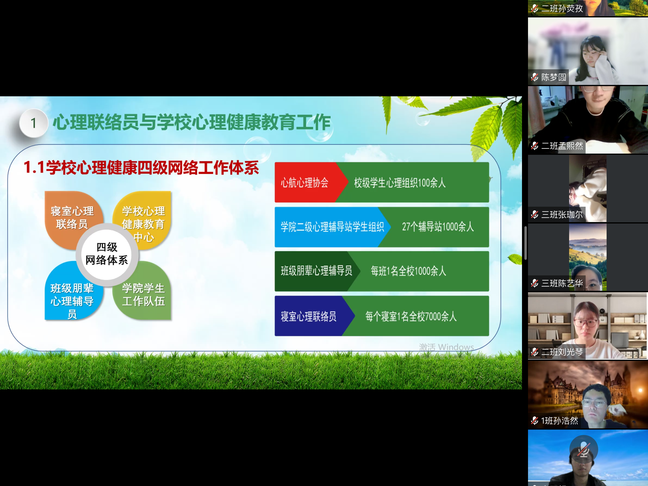 最后,焦瑞老师向大家介绍了往届丰富的的心理健康教育活动。通过对往届丰富的心理健康教育活动的介绍,同学们对于心理健康教育活动有了更深层次的了解,这对于之后21级心理健康教育工作的开展有着启发意义。心里联络员又了解了心理辅导站各个部门的工作内容、熟记了心理辅导站的联系方式,为之后相应活动的开展打下了基础。