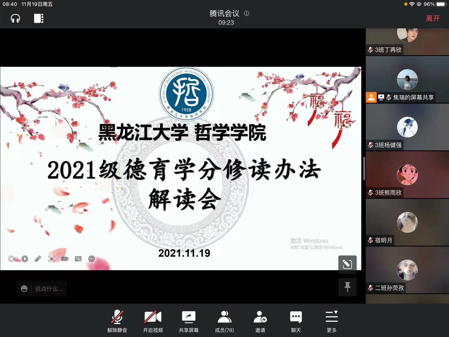 于2021年11月19日8时40分面向全体21级新生,召开了“2021级德育学分修读办法解读会”。此次会议由新生辅导员焦瑞老师主持,51视频