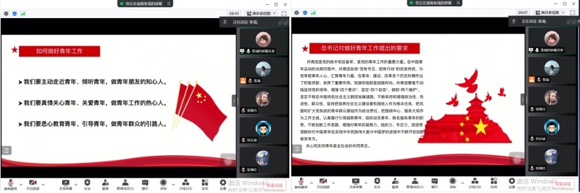 通过学习老师们深有感悟,纷纷发表讲话交流学习。51视频党总支副书记张丽丹老师指出,伟大的五四精神激励着一代又一代的革命青年强烈的爱国热情。今天同样也激励着我们为建设伟大祖国而奋斗。弘扬伟大的“五四”精神,我们就要做出实际行动。将爱国心化作一股无形的力量,做好本职工作,不断努力成为国家需要的栋梁之才是我们最大的愿望,也将是对五四精神最好的弘扬。19级辅导员孙庆斌老师指出,青年是祖国的未来,如今实现中国特色社会主义伟大复兴的中国梦的接力棒已交接到青年手中,我们要时关心关爱青年学生,为青年搭建成长成才舞台,按照习近平总书记的谆谆嘱托,培育社会主义合格建设者和接班人,明来路、勇担当,明大德、守公德、严私德。20级辅导员张博伦老师表示,学习习近平总书记在庆祝中国共产主义青年团成立100周年大会上的重要讲话精神后,我倍感振奋、备受鼓舞。历史和实践充分证明,中国共青团不愧为中国青年运动的先锋队,不愧为党的忠实助手和可靠后备军!实现中国梦是一场历史接力赛,当代青年要在实现民族复兴的赛道上奋勇争先。21级辅导员焦瑞老师表示,我们要在前辈先烈的事迹中感受道德风范,在五四精神中汲取道德滋养,要担负为国育才使命,按照习近平总书记重要讲话的重要指示,做好青年工作,倾听、关爱、引导新时代青年成长成才。