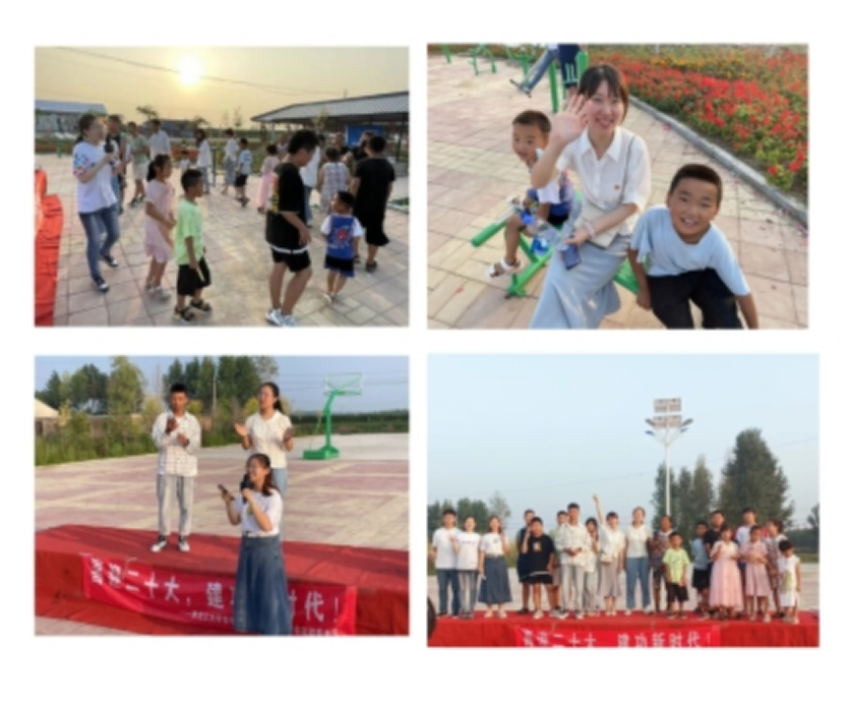 接下来,团队成员们又来到了大庆市肇州县永强村大双山子屯小广场,为村民们进行理论宣讲。团队中的三位同学分别从119运动,中东铁路以及北大荒精神三个角度,为大家讲述红色故事,宣传红色文化。此外,大家还与参加活动的学生们进行了互动问答和小游戏,并为他们颁发了小礼物。台下的观众们纷纷积极踊跃的参加,现场气氛十分活跃。此次活动,同学们不但锻炼了自己的实践能力,增加了社会经验,而且加深了对红色文化的感悟,可谓获益匪浅。
