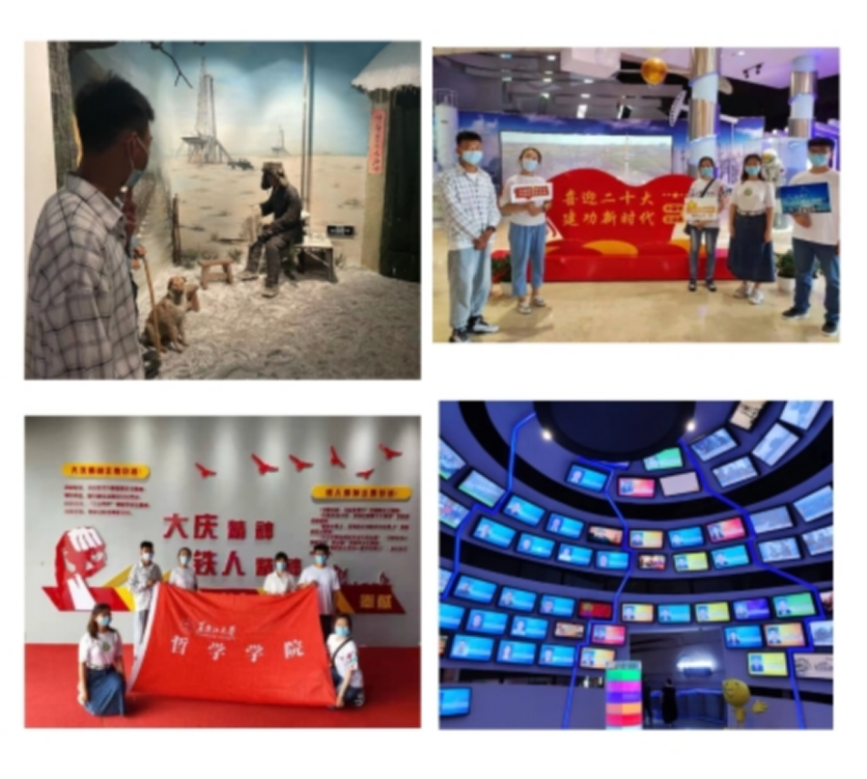 活动的第二站,21级辅导员焦瑞老师带领五名同学来到了大庆市,进行社会实践活动。首先,7月25日,“三下乡”社会实践大庆行团队的成员们参观了大庆石油展览馆。在这里,大家了解了石油的勘探、开采、利用等过程;了解了大庆这座石油之城近百年的沧桑巨变;更从一位位杰出人物的事迹中,感悟到了大庆精神,铁人精神的丰富内涵。在今后的生活中,同学们定将遵循着大庆精神,铁人精神的指引,并将其实践在日常生活中,砥砺奋斗,努力前行。