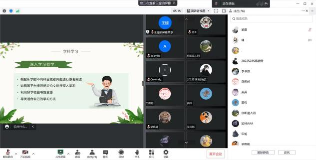 首先,王媞学姐从学科学习、英语学习和学习、工作与生活三个方面分享学习经验。王媞学姐强调:在学科学习方面,同学们要做好本职工作、利用各种平台深入学习哲学并注重学习方法;在英语学习方面,同学们要认识到英语的重要性,提早通过四六级考试;在学习、工作与生活方面,同学们要学会利用零碎时间、拒绝拖延并且积极探究方法论。
