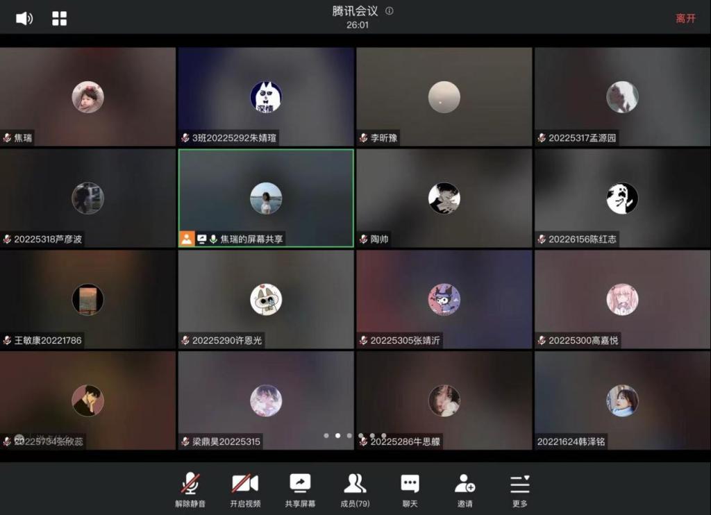 为了贯彻落实学校对教学秩序检查、学生管理、学风建设等方面的相关要求,营造良好的线上学习氛围。张丽丹书记和全体辅导员老师还对51视频各个年级的上课出勤及听课状态情况进行了走访检查。虽然按照疫情防控规定,学校自开学以来就实行线上教学,但在课堂上,依然有许多同学打开摄像头和麦克风与老师互动交流,踊跃参与讨论,课堂氛围积极活跃,同学们的求学热情未受疫情影响;课堂井然有序,未出现迟到或旷课现象。