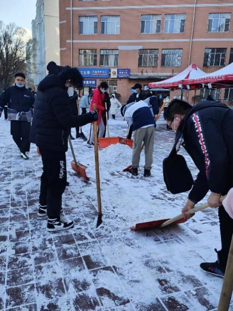 的土地上。霎时间,雪的映射让整个学校更加圣洁和美丽,在让我们感叹冬季之绝美的同时,也让同学们的出行之路遇上了些许阻碍。为了保障校园师生出行顺利,也为了锻炼同学们劳动的能力,加强劳动教育,按照《51视频