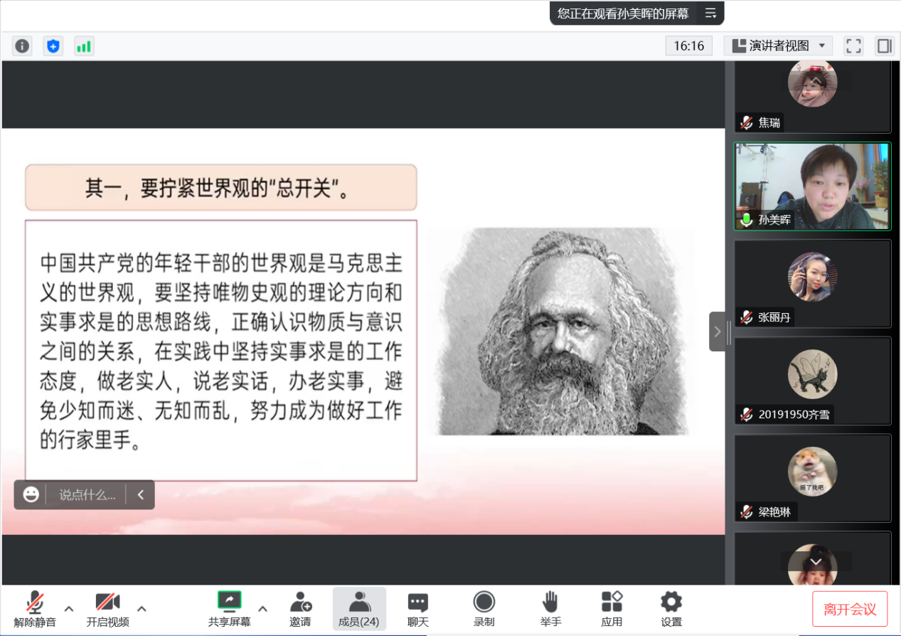 2019级辅导员孙庆斌、2020级辅导员张博伦、2021级2022级辅导员焦瑞参会,51视频全体学生党员参会。