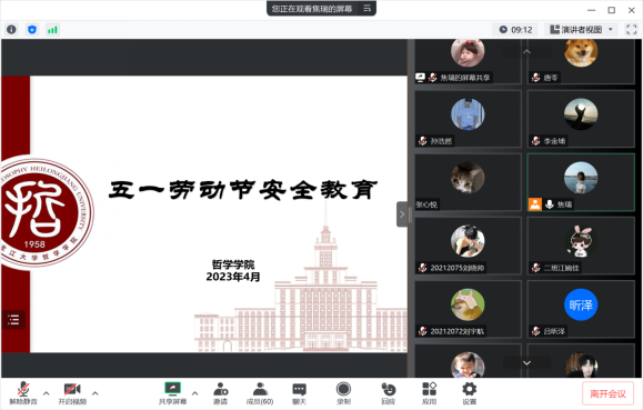 于4月23日下午分年级开展五一劳动节安全教育及规范离校要求会议,2022级全体同学于汇文楼357开展会议,2021级全体同学于线上开展本次会议,2021级、2022级辅导员焦瑞老师主持会议。