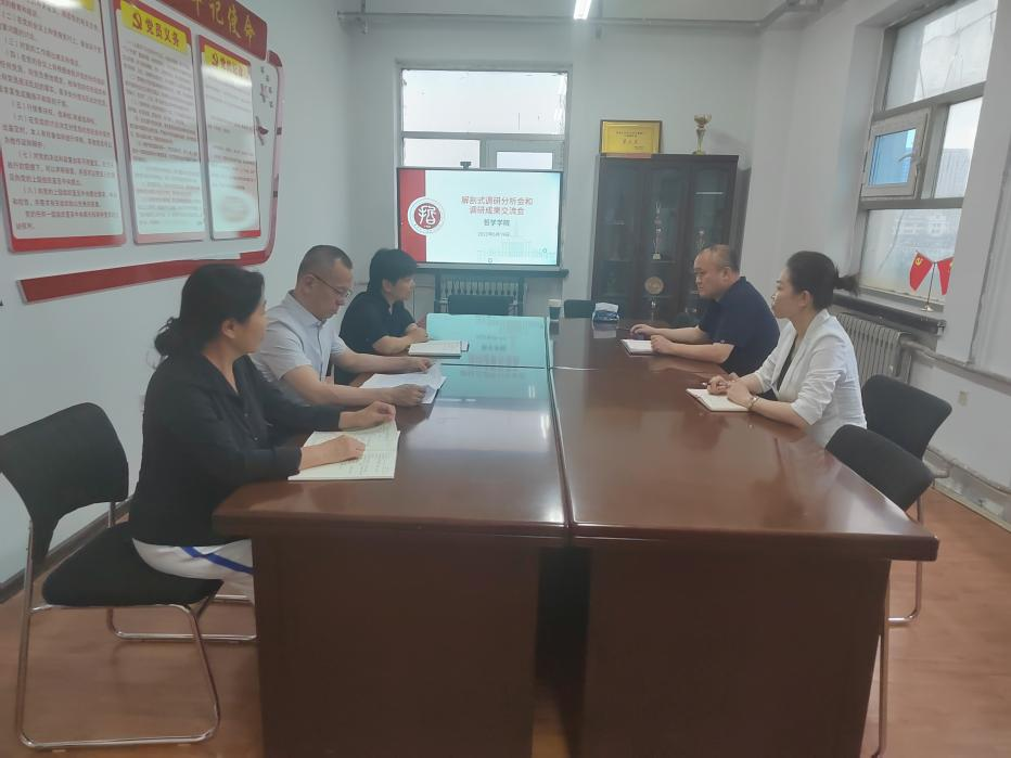 在调研成果交流环节,领导班子成员依次从选题背景、调研过程、该领域基本情况和发现问题、整改措施及对策建议等方面,重点围绕新形势下高校基层党组织建设、完善党建与业务工作融合发展机制、完善学科整体布局、人才培养和队伍建设、构建新时代大学生社会主义核心价值观培育践行体系、新时代大学生社会实践活动提效等主题,针对初步调研成果进行了交流。与会成员根据交流调研情况,对问题进行逐条梳理、逐项分析,不仅就自身调研题目提出下一步工作思路与具体举措,同时也结合自身工作实际结合相关调研主题,交换意见,提出可行性建议,进一步丰富完善调研成果。