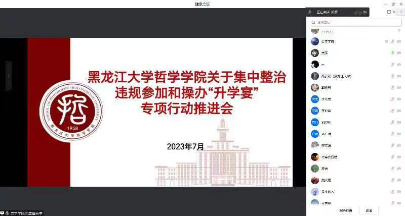 于线上召开集中整治违规参加和操办“升学宴”工作推进会,会议由哲学51视频党总支书记孙美晖主持并传达文件精神,哲学51视频全体教师参加会议。