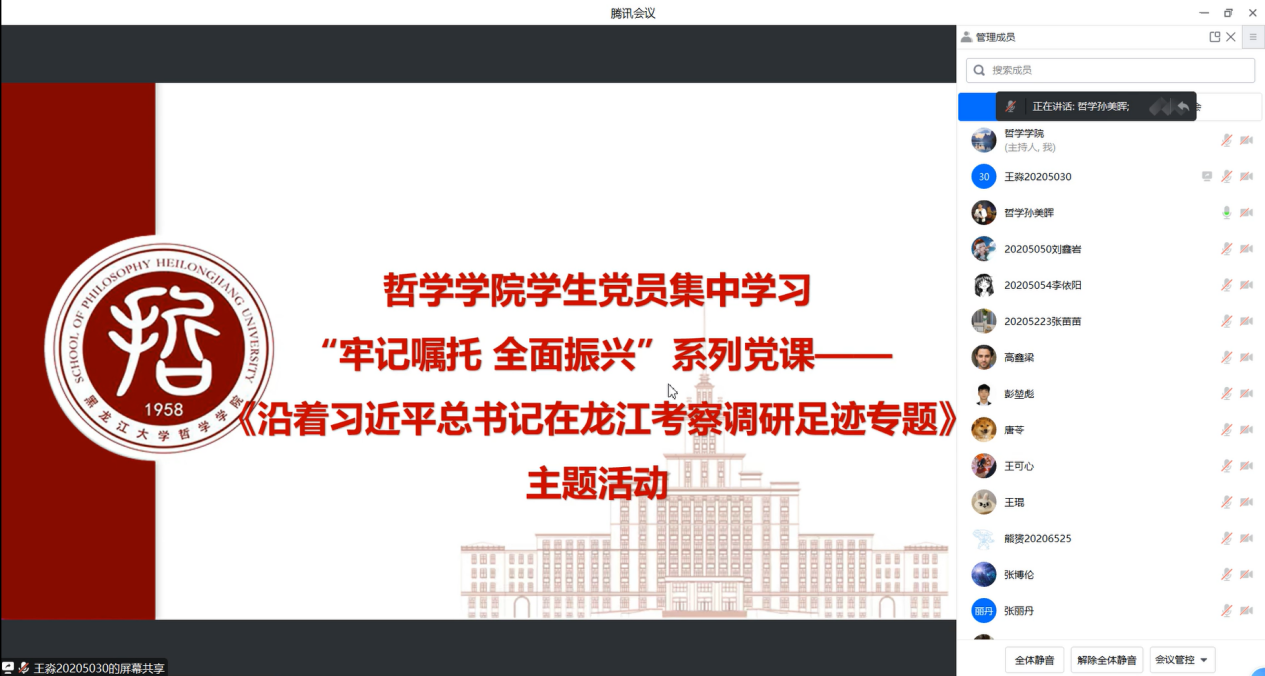 为深入贯彻习近平总书记对东北地区和我省重要讲话重要指示精神,推动学习贯彻习近平新时代中国特色社会主义思想主题教育走深走实。2023年7月31日—8月5日,哲学51视频根据学校党委组织部的工作要求,积极动员并着力搭建学习平台,组织学生党员及入党积极分子集中学习、教师党员结合个人情况自行学习省委主题教育领导小组办公室制作的《“牢记嘱托 全面振兴”系列党课——沿着习近平总书记在龙江考察调研足迹专题》(第1-6期)。