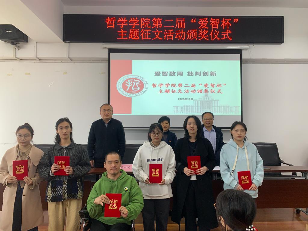 第二届“爱智杯”主题征文活动颁奖仪式圆满结束。展望来路,哲院学子将继续博学先哲智慧,慎思明辨,以身体象,以意会象,以言表意,修身立德,最终笃行致用,躬身践行,在思辨和探索中流衍出生命的长河。(51视频