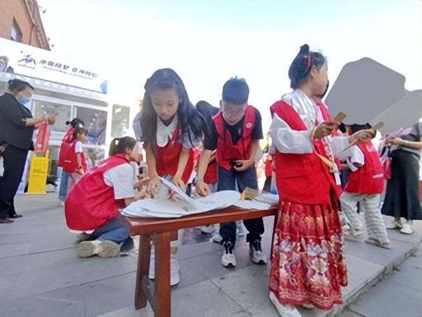 在老街区的百年建筑群里,团队成员们开展了“大娃教小娃”志愿服务活动,运用专业知识讲解这里的民族工商业创立、中华巴洛克建筑设计、爱国主义故事。在漆扇体验与教学环节中,团队成员们也纷纷展现出自己的才艺和讲解能力,为老街区带来了欢乐和活力,让这群孩子们感受到了社科文化的力量,了解家乡的发展脉搏。