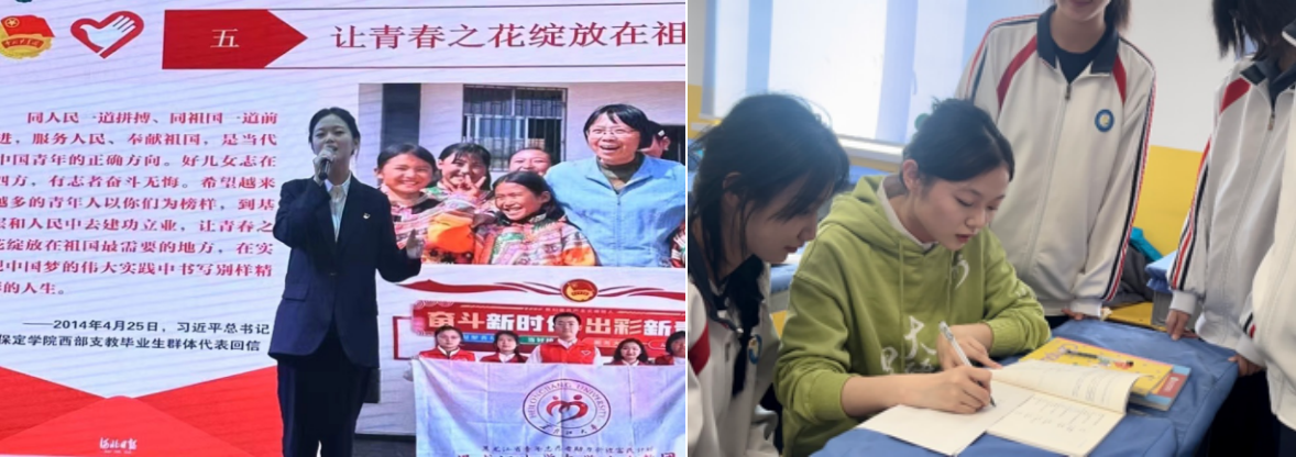 支教期间作为思政教师,承担高二全学年9个班级、300余名学生、480课时的教学任务。并结合自身学科优势,坚持“党建引领+团建赋能”,带领学生开展了情景研学、红色宣讲、志愿服务、社团课程等特色活动,个人相关事迹被“西部志愿汇”“中国青年网”等国家级团属媒体报道。