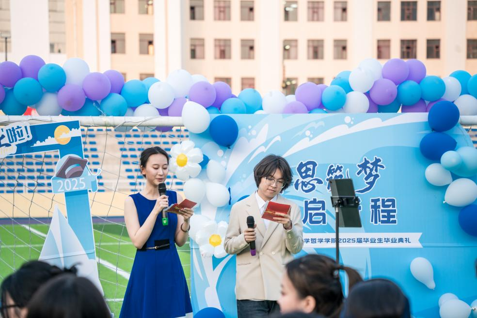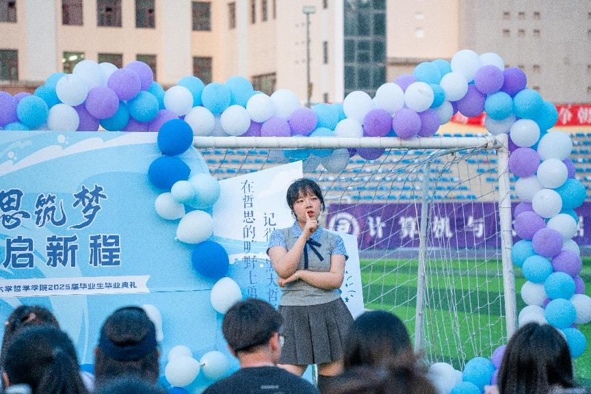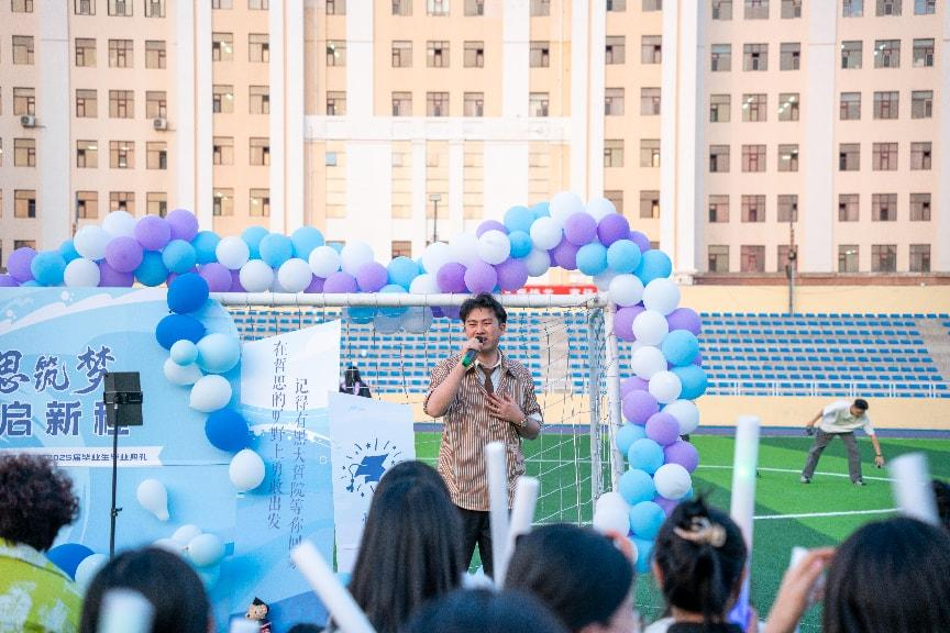 2025年5月29日傍晚,51视频 举办“思哲辨理展风华,驭梦扬帆赴山海”2025届毕业生草坪音乐联欢会51视频 党委书记孙美晖、51视频 院长蒋红雨、51视频 党委副书记王贵宇、51视频 副院长周来顺、正处级辅导员孙庆斌老师以及各年级辅导员齐聚现场,与毕业生们共赴这场镌刻哲思与温情的歌会。从激昂歌舞到深情朗诵,从惊喜互动到师长寄语,整场联欢会精彩纷呈,师生们用歌声、祝福与陪伴,为毕业生们点亮奔赴未来的启航之路。