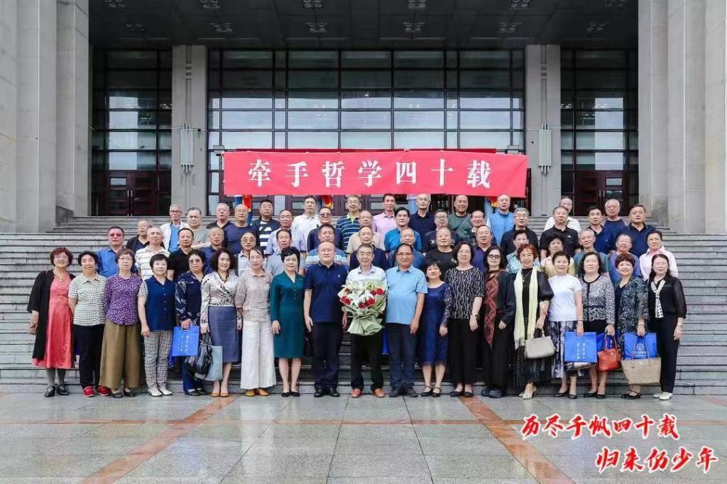 历尽千帆四十载,归来仍少年。近日,值此毕业四十周年之际,哲学系79级校友毕业40周年返校聚会活动顺利举行,四十载风雨兼程,昔日的青葱学子如今已然充满了岁月的积淀,但不变的是校友们永葆“博学慎思,参天尽物”的黑大精神。他们从五湖四海奔赴阔别已久的母校,重聚在沙曼杨柳挺立的的故园,重温校园时光,共赴四十年之约,与老师和同学们同忆师恩、共叙情谊。