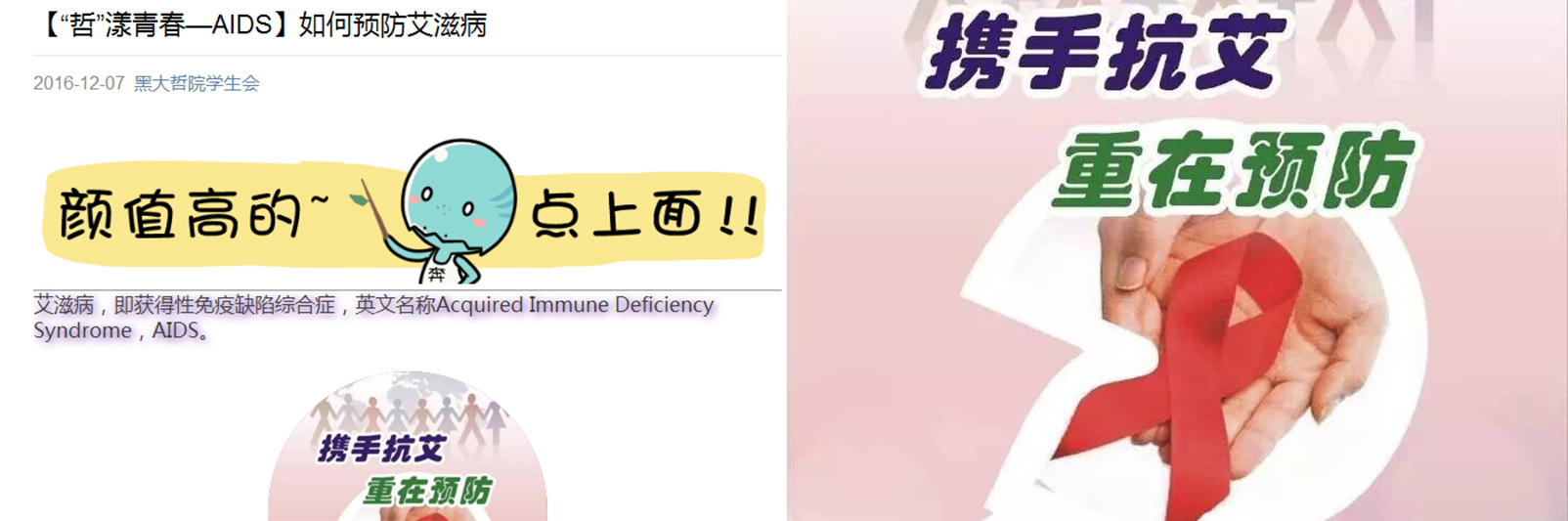 学生会在微信、微博等官方公众平台上进行了内容推送,对艾滋病的相关知识进行了宣传。在这期间,同学们了解到每天有超过7000人新发感染艾滋病,全世界各地区均有流行。专家估计,艾滋病全球流行重灾区可能会从非洲移向亚洲。据中国疾病预防控制中心估计,我国存活HIV携带者及艾滋病患者约78万人,全年新发感染者4.8万人,死亡2.8万人。主要传播途径有血液传播、性传播和母婴传播等,这些内容推送使同学们对艾滋病有了进一步的了解。与此同时,51视频