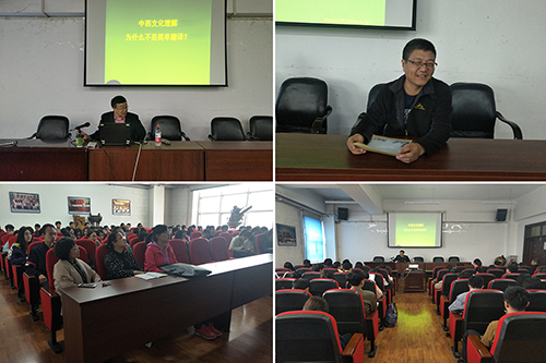 讲座开始前,田老师对自己在国外和回国后的学习工作经历进行了简要的回顾和介绍,围绕着“中西文化理解为什么不是简单翻译”这一问题,从中西文化比较的视角进行了阐述和讲解。田老师认为西方文化一多二元的世界观和中华文化一多不分的世界观代表着中西方文化两种思维方式的巨大差异,由于这种差异进而中西方语言也存在着巨大的差距,因而在两种文化语义环境中的中西方语言实质上不能像传统翻译一样对两种语言进行十分准确的翻译,只能对两种语言进行阐释理解。讲座过程中,田老师通过列举常见的生活词汇、政治词汇和哲学词汇来阐明经过中西方翻译之后词汇含义的巨大差别,使同学们更加形象的理解到中西方语言对译的困难,并从语言范畴问题、西方世界观、概念性语言和思维方式等方面对深层次的结构性差异进行了讲解。最后,田老师对现场同学的提问进行了详细的解答,本场讲座在热烈的掌声中圆满结束。