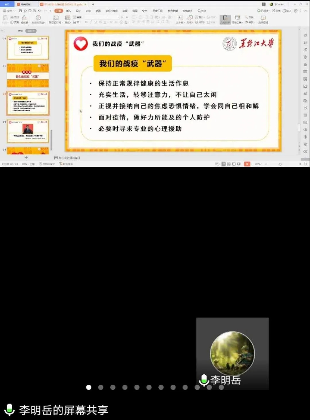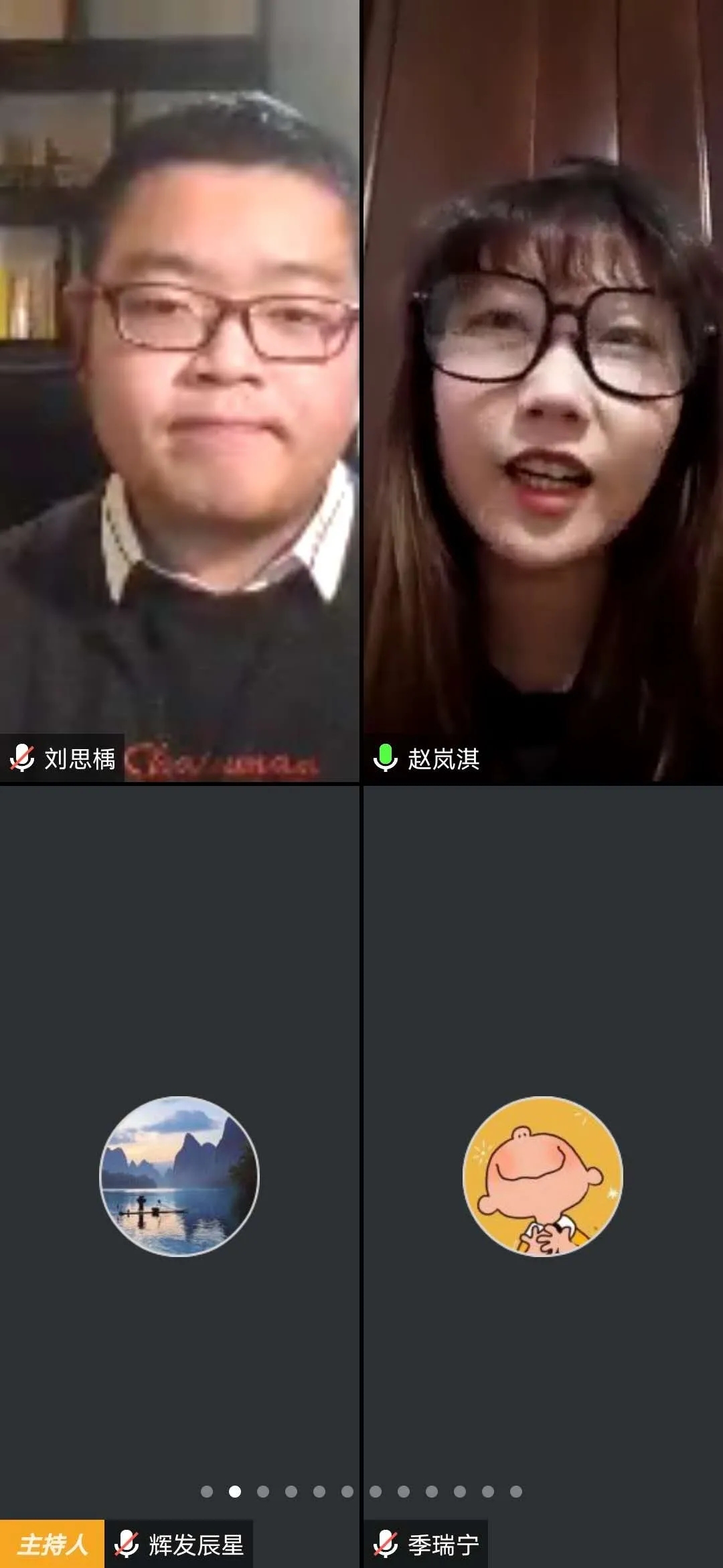 郝星宇和刘思楀分享了疫情防控特殊时期参加线上课程的学习经验和方法,指出线上学习要严格按照任课老师的安排,认真对待每一堂课,积极参与到课堂活动当中,自觉安排学习任务,做好规划,合理作息,关注学习进度,保障健康和学习两不误,在战“疫”中发挥自身作用,贡献出自身应有之力。张博伦老师介绍了在疫情防控期间,51视频利用新媒体平台开展线上思想政治教育和文化活动的情况,赵岚淇和历芷玉同学分享了自身积极参与线上活动的心得和体会,表达了学生党员积极响应“少出门,不聚集”号召,合理调节生活节奏,增进与家长沟通交流,居家防疫为防控贡献力量的表率带头作用。李明岳和王天夫同学介绍了居家学习生活期间的心理调节知识方法和有效经验,展现了学生党员积极向上,乐观阳光,坚定战胜疫情信心,以实际行动传递正能量的先锋模范发挥。