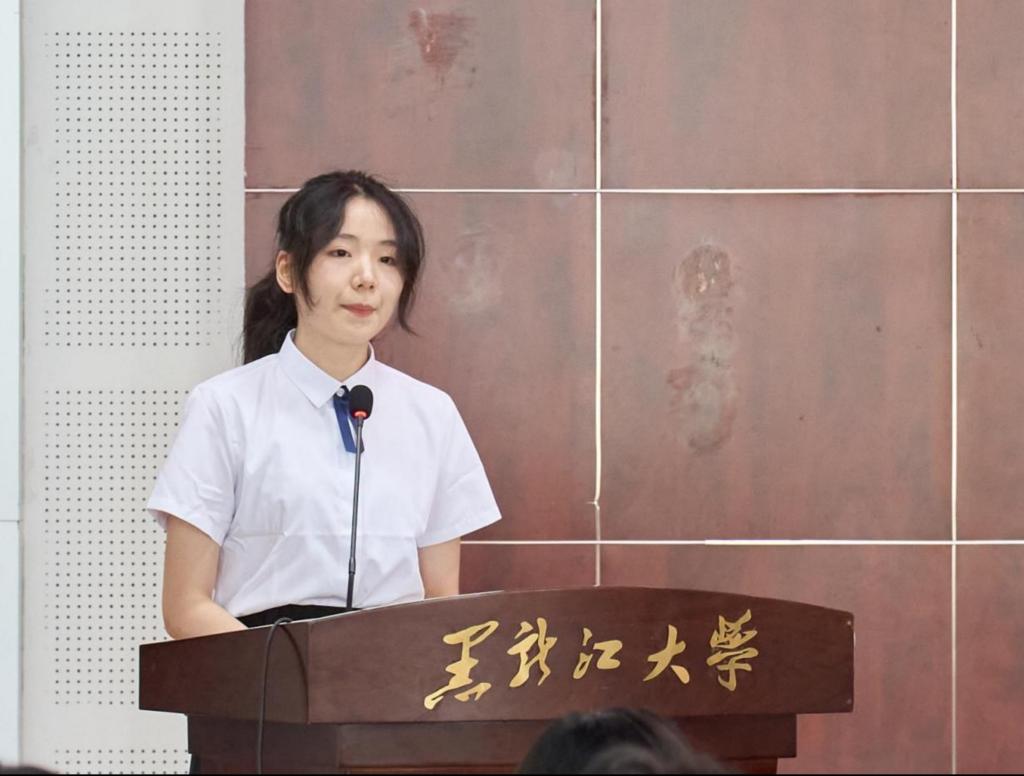 2025级应用伦理专业王艺媛同学代表研究生新生发言,她在发言中首先表达了踏入学术新阶段的欣喜与敬畏之情,并对家人的支持与51视频的培养致以衷心感谢。她表示研究生不仅是知识的学习者,更应成为思想的探索者、价值的判断者和未来的建设者。她代表全体新生表示,将以马克思主义为指导,提升理论素养与思辨能力;未来会不负师恩与亲情,在黑大深耕“爱智慧”领域,以实干书写青春,为51视频添彩。