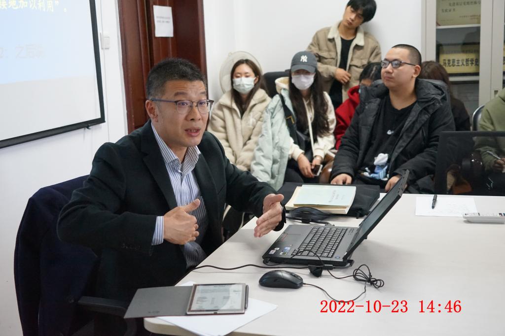 评议人高云涌教授从私有财产研究在马克思主义哲学研究中的意义、外化劳动与异化劳动的关系、马克思对于共产主义的观点、关于类本质的理解等问题与姜海波教授进行了学术对话。二位学者的精彩对白引发了到场教师和同学的热烈研讨。郭艳君教授从理论研究、文献学研究和文本研究三种研究路径及其关系入手,就私有财产研究在理解《手稿》上的意义,马克思如何理解共产主义等问题如何解读问题发表了自己的看法。李昕桐教授从《手稿》和《关于费尔巴哈提纲》之间的马克思思想发展的连续性问题入手,结合感性对象性到对象性活动的理论连贯性问题同姜海波教授进行了商榷。李先龙老师从论证方法方面,特别是材料整理与观点论证的互补方面发表了自己的见解。