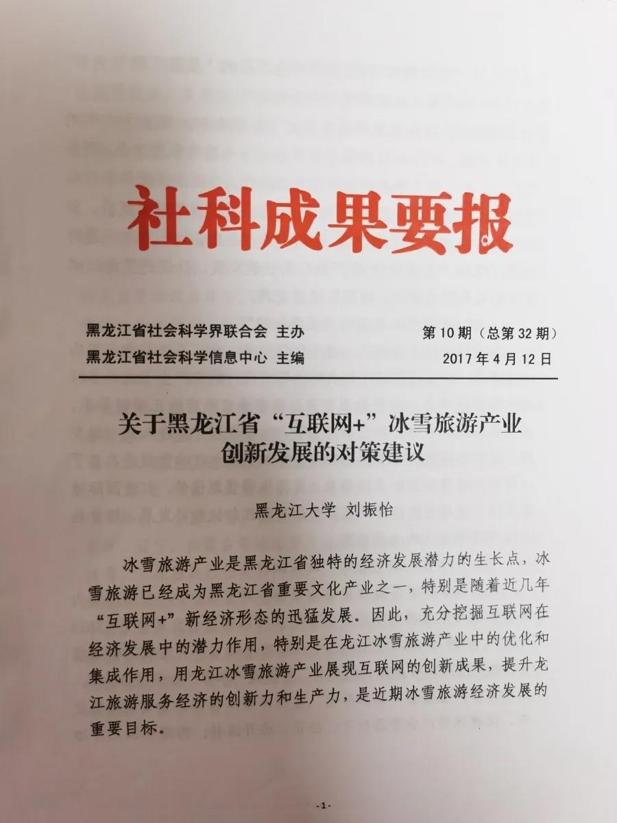 刘振怡:《关于黑龙江省“互联网+”冰雪旅游产业创新发展对策建议》
