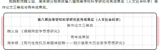 魏义霞老师、周来顺老师荣获第八届高等学校科学研究优秀成果奖(人文社会科学)