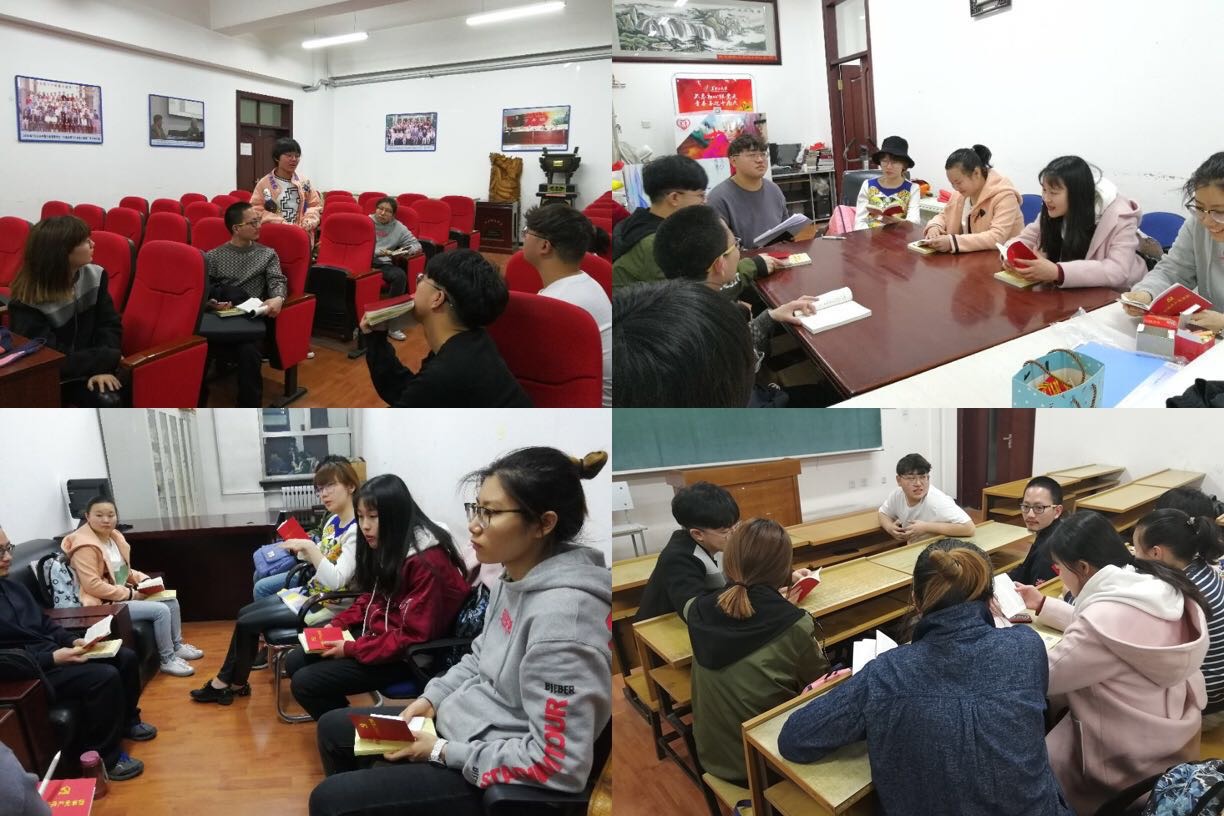 在“新时代如何做好学生党员”的讨论中,同学们讨论了作为“新时代”要求下的大学生党员应当做什么、能做什么、怎么做的问题,努力将落实报告精神与实际工作结合起来。大学生党员应该坚持以习近平新时代中国特色社会主义思想为行动指南,要通过学习,不断坚定理想信念,坚定“四个自信”,做习近平新时代中国特色社会主义思想的坚定信仰者。在最后一轮分组讨论中,同学们集体学习了党员发展程序和有关党内规章。