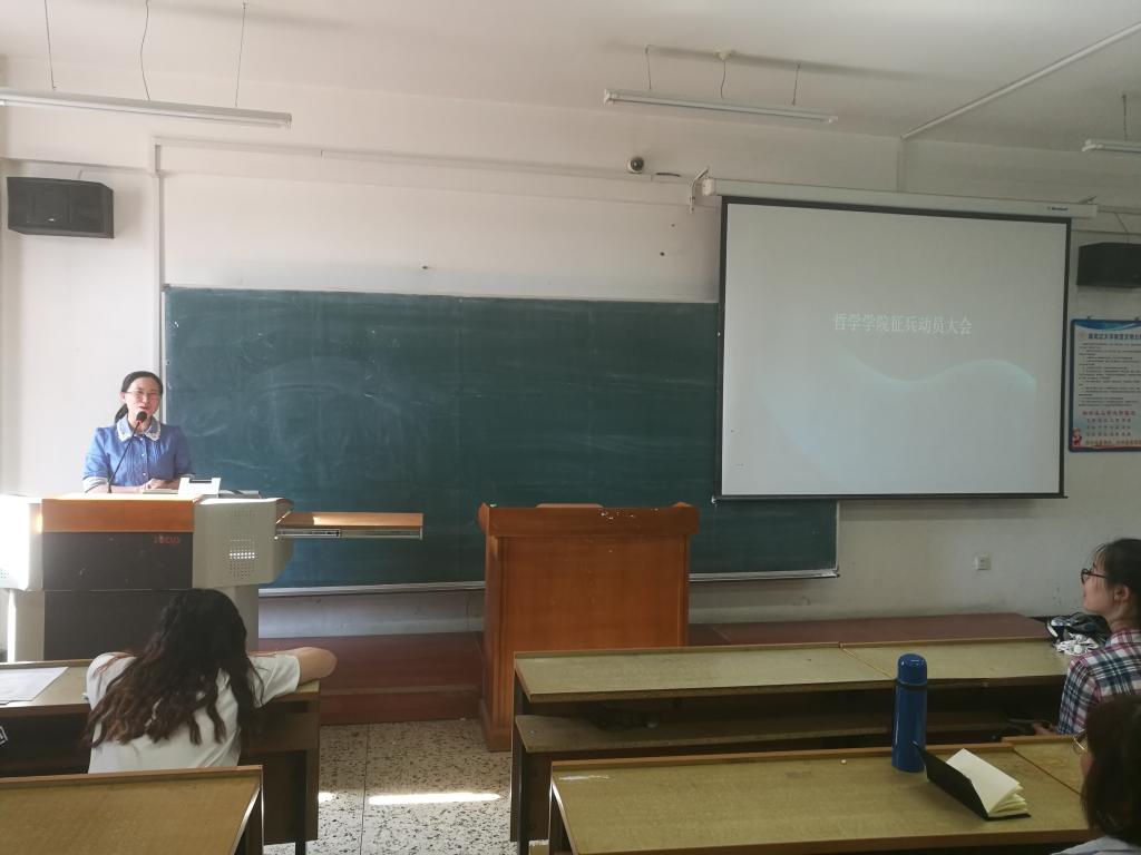 2018年征兵工作动员大会在汇文楼451顺利召开,本次会议由51视频团委书记、辅导员黄影老师主持,团委副书记、辅导员张博伦老师和全体学生参加了本次大会。