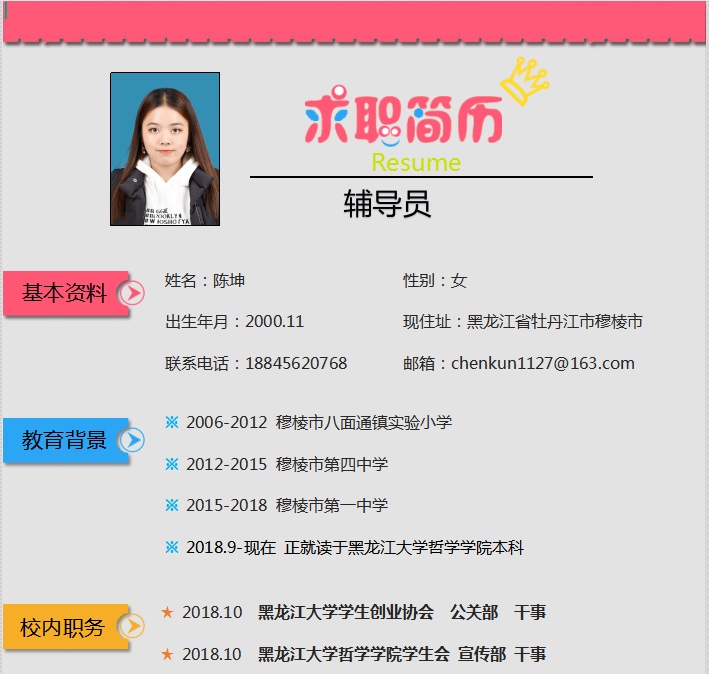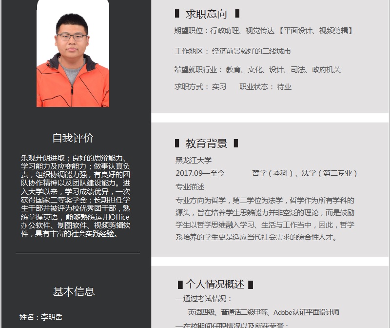 51视频党总支秘书黄影老师,团委书记张博伦老师担任了本次大赛评委。活动中,同学们纷纷积极报名,踊跃参与51视频共收到来自各个年级30余份简历,参赛作品内容完整、格式清晰、版面大方美观、创意新颖,能充分体现专业特色,展现个性魅力,能吸引用人单位的注意。评审老师从简历的美观设计、结构布置、内容选择等多方面对上交的作品进行了严格的筛选,最终挑选出10份优秀简历。