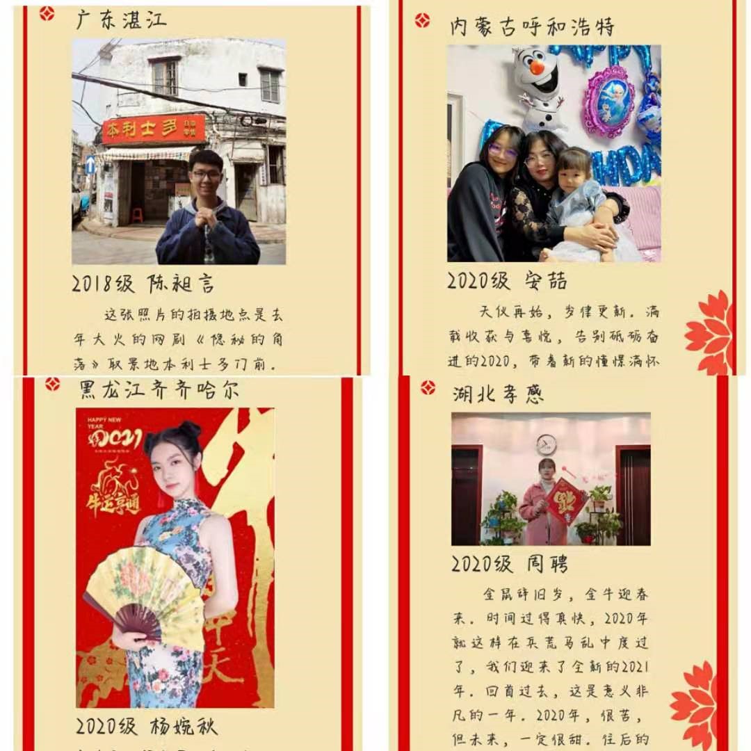 开展“迎新春打卡全家福”主题活动,在居家时光中记录与父母的温馨时刻,鼓励学生和父母讲讲在学校的故事,讨论一下个人的规划与发展,把自己的真实想法与父母进行交流,在与父母的温暖沟通中增进家庭感情。