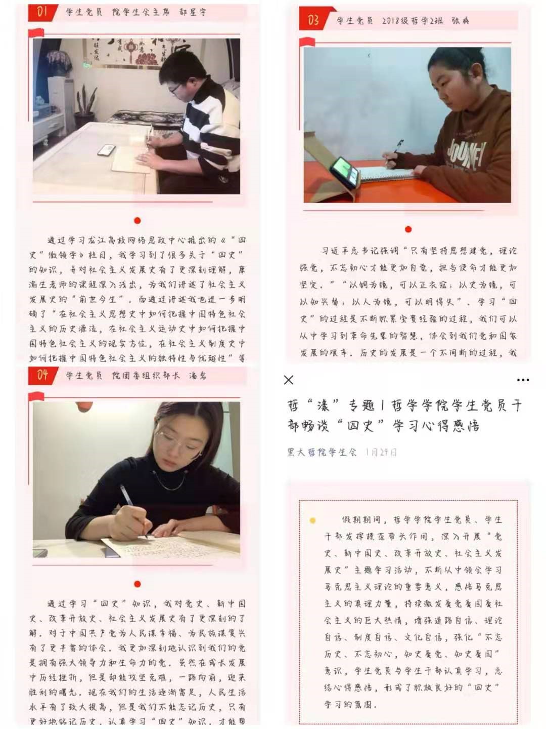 学生党员干部畅谈‘四史’学习心得感悟”等主题活动,学习革命先烈的英雄事迹,了解新中国伟大复兴的奋斗历程,感受改革开放伟大成就饱含的创新创造宝贵经验,领会社会主义发展史中坚定的理想信念,在学深悟透“四史”的过程中更加坚定制度自信。