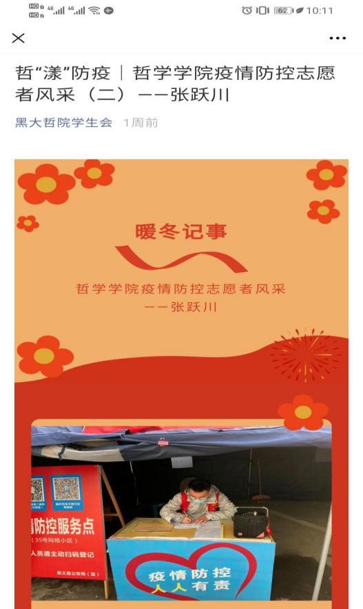 疫情防控志愿者风采专栏”,注重报道宣传51视频学生主动投身疫情防控一线的先进事迹,讲好身边榜样故事,鼓励向身边典型学习,以实际行动擦亮青春底色。