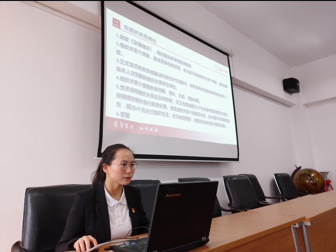 张丽丹副书记强调毕业生党员要立足本职,积极配合51视频完成各项离校工作,站好“最后一班岗”。同时,要带动身边人主动参与到各项活动中来,发挥党员的榜样力量。黄影老师针对毕业生党员组织关系转出及注意事项做了详细说明,对于毕业后预备党员接续培养做了介绍,提醒各位党员及时到转入单位报到。孙庆斌老师就接下来的毕业生文明离校相关工作、党史学习教育进行了具体安排和指导。