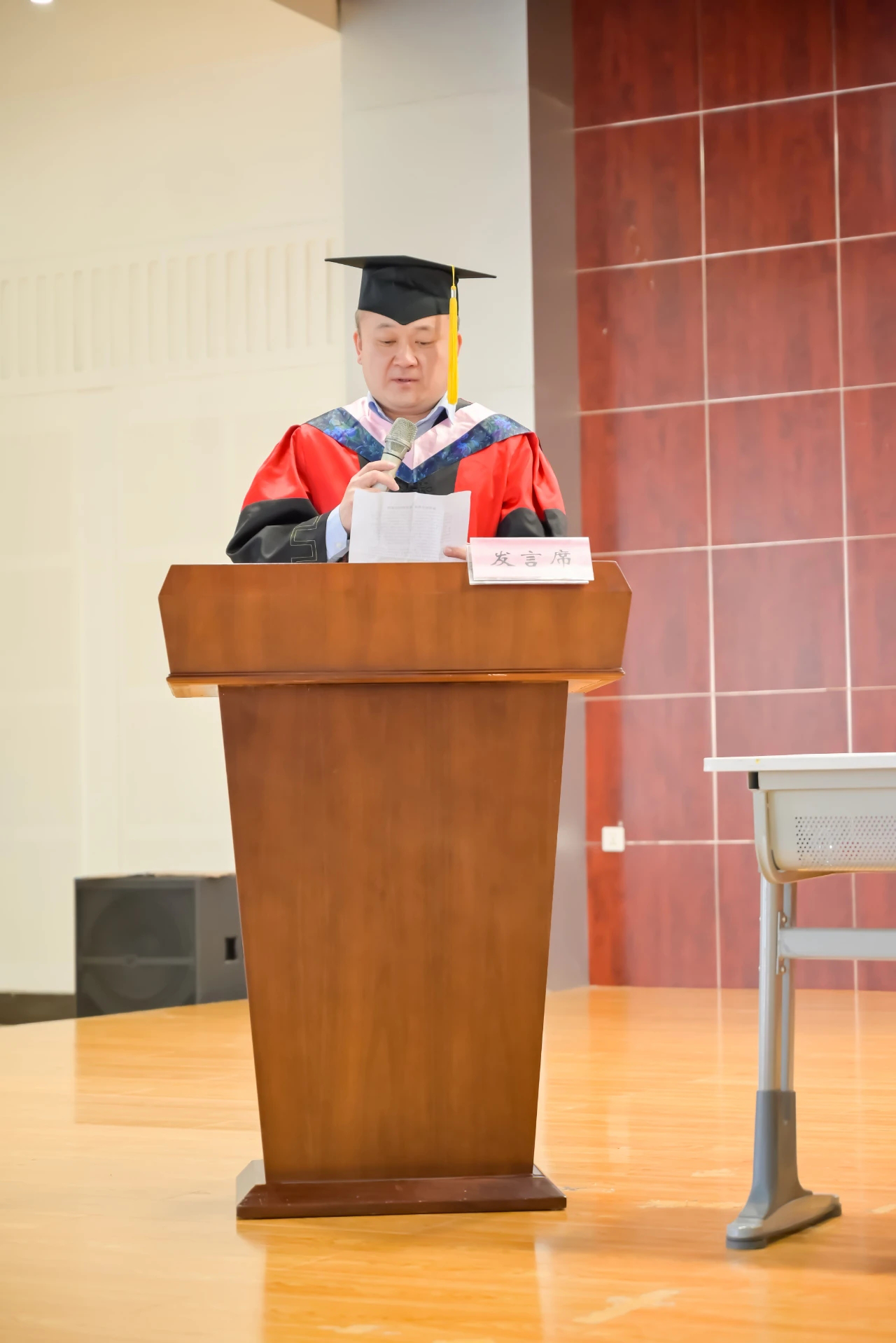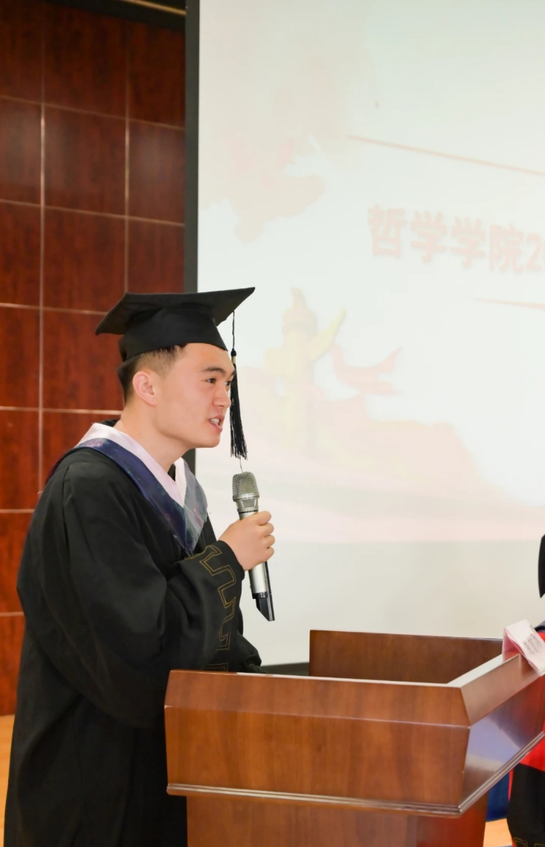 典礼第五项,毕业生代表梁成德同学代表毕业生讲话。