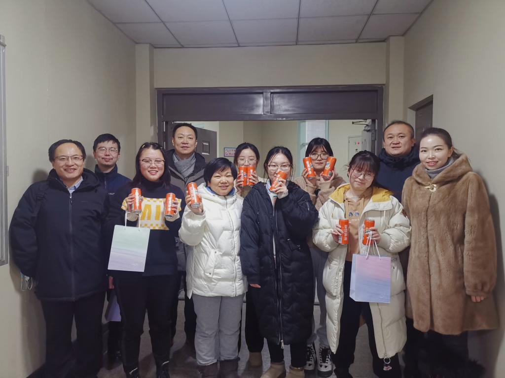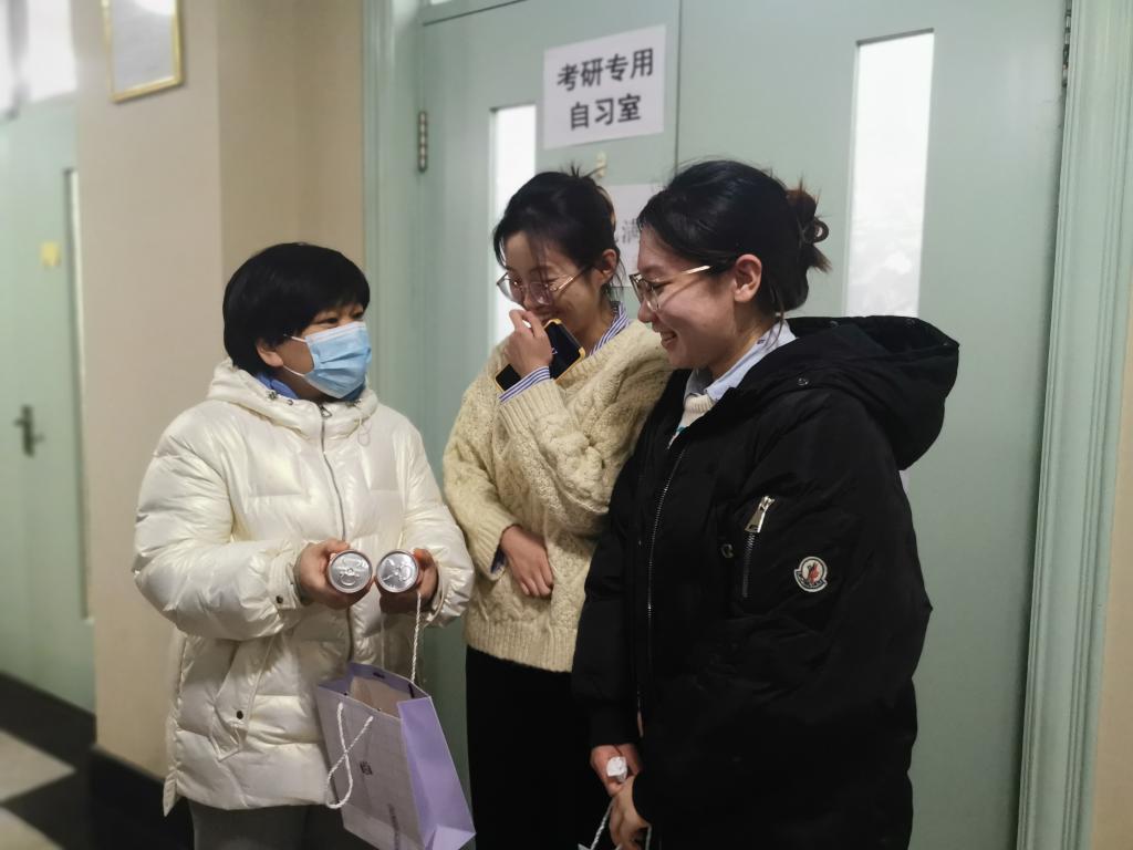 党总支书记孙美晖、院长蒋红雨、党总支副书记张丽丹、副院长高来源、副院长周来顺、党务秘书黄影、2018级辅导员张博伦来到艺术楼及学生寝室为考研同学发放“暖心加油礼”并送上祝福。