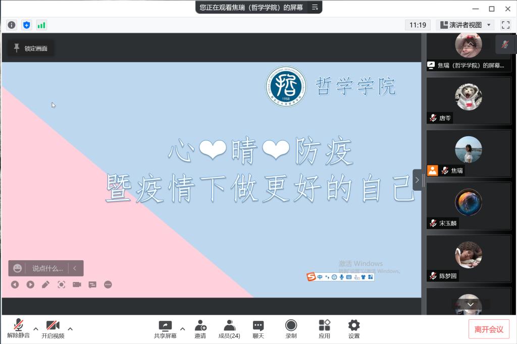 积极响应学生工作部关于开展“开学第一课”的号召,组织开展心理健康“心晴防疫 做最好的自己”系列教育活动,辅导员焦瑞老师开展团体辅导,51视频