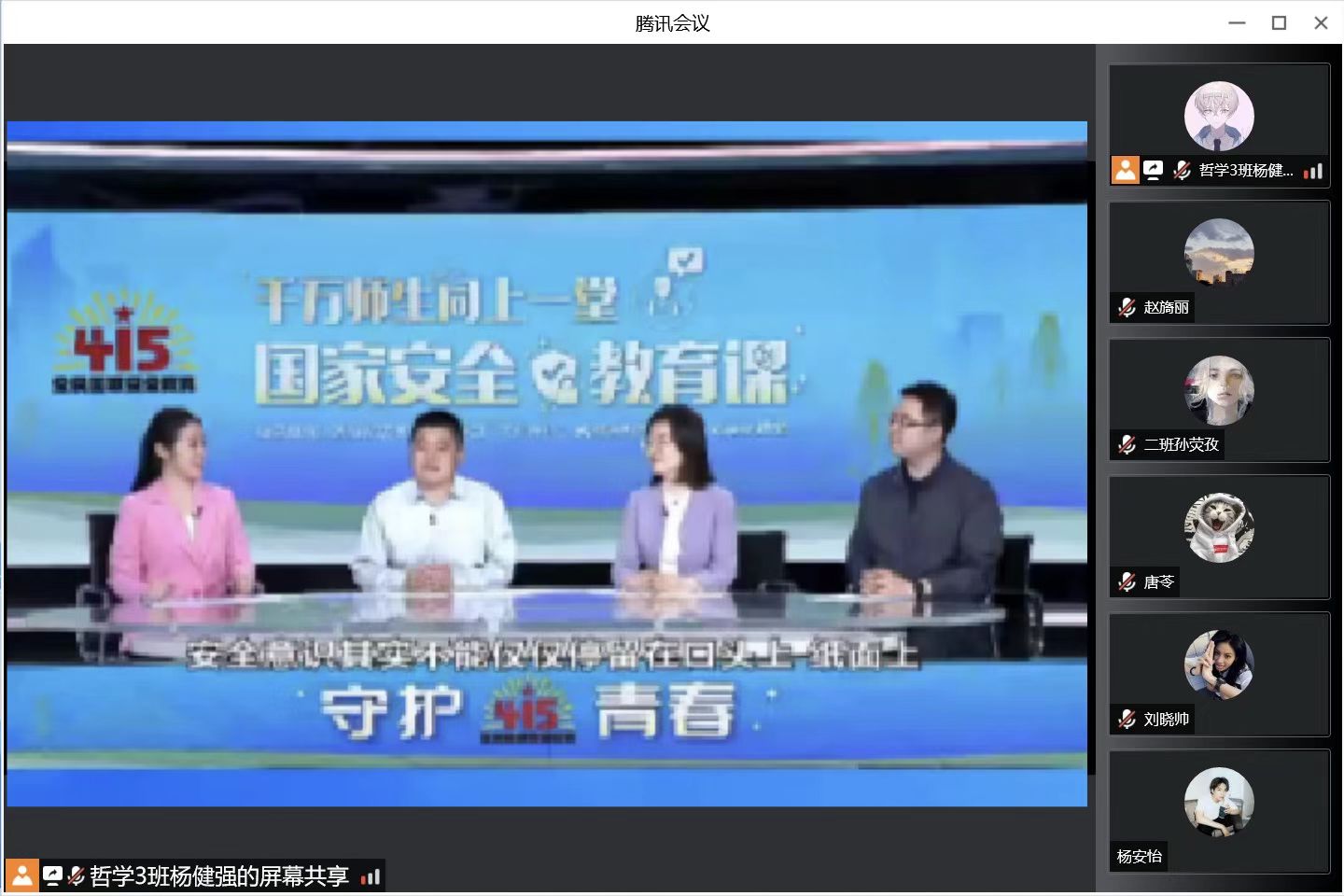 首先,51视频各年级同学积极学习了“同上一堂安全教育课”直播课。该公开课视频由北京大学保卫部部长赵冠英、腾讯守护者计划安全专家张文涛、山东大学辅导员薛冰、北京师范大学2019级本科生刘懿莹联合分享。随着时代发展,出现了一些不断地危及着社会的发展和进步的现象,安全教育的普及已经迫在眉睫。公开课为我们讲解了一些案例,展现了一些反面教材,告诉我们要维护国家安全,提高自我安全防范意识,要牢固树立国家安全观。