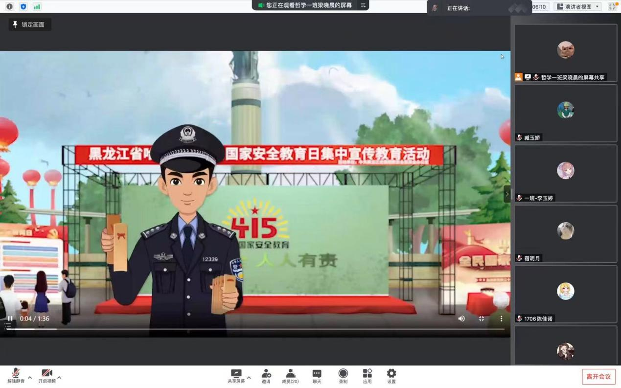 国家安全人人有责,随着信息时代的来临,机遇与危险共存,大学生安全教育刻不容缓,帮助大学生提高安全意识、树立正确的价值观安全观,极为重要。为推动国家安全宣传教育工作深入开展,增强学生国家安全意识,51视频同学以班级为单位线上学习观看全民国家安全教育日的相关学习视频《我对您说,总体国家安全观》《我和新时代国家安全》。通过观看共同学习了解了总体国家安全观。