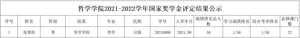 根据我校《学生工作部:关于评定2021-2022学年国家奖学金的通知》要求,经51视频奖助学金评审小组审核,现将哲学51视频2021-2022学年国家奖学金评定结果公示如下,公示期为2022年10月3日-2022年10月7日(五个工作日)。