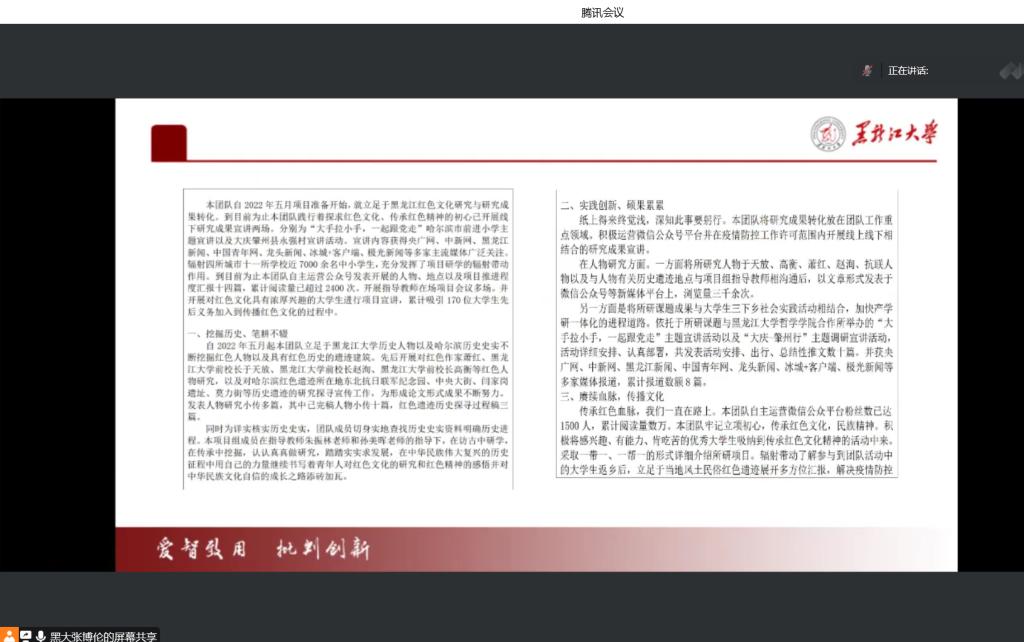 评审会上,张博伦传达了《2022年大学生创新创业训练项目中期检查通知》主要内容,副院长周来顺介绍了进行大学生创新创业训练项目的重要意义、我院既往大学生创新创业训练项目方面取得的成绩以及51视频2022年大学生创新创业训练项目情况。随后,各项目组主要负责人依次对各自2022年大学生创新创业训练计划项目目前进展情况进行汇报,详细说明了目前已取得成果、中期报告、经费使用明细、下一阶段工作计划、指导教师意见等相关情况,并对评委就项目的提问进行回答。各位评委对项目的中期检查表进行了仔细查阅,并就项目的中期情况进行认真讨论评审检查。经过评审,我院3个2022年大学生创新创业训练项目通过中期检查51视频初审环节,拟提交学校进一步审核。