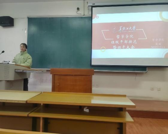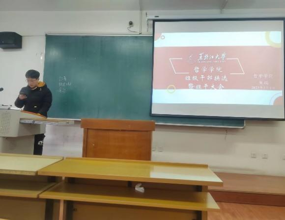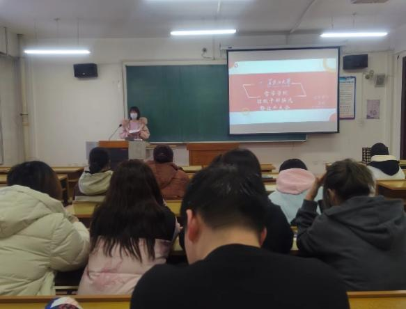 22级分批次分班级组织“学期新征程,青春展担当”班干部换选暨班干大会,2021级、2022级辅导员焦瑞老师主持会议,2022级全体同学参加会议。