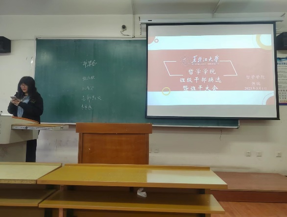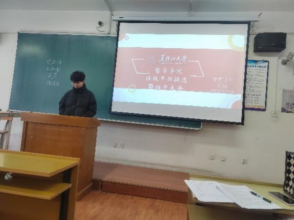 首先辅导员焦瑞老师对班级干部换选暨班干大会进行讲解,提出对班干的要求,作为班干部不仅要学习优秀,也要具有良好的组织能力与管理能力,要有责任意识,服务意识,奉献意识,大局意识。还提出班干部就是要实干,拥有干部就是干事的心态,担任班干部可以提高同学们的沟通能力,协调能力,磨炼意志,做到贡献与收获双收。