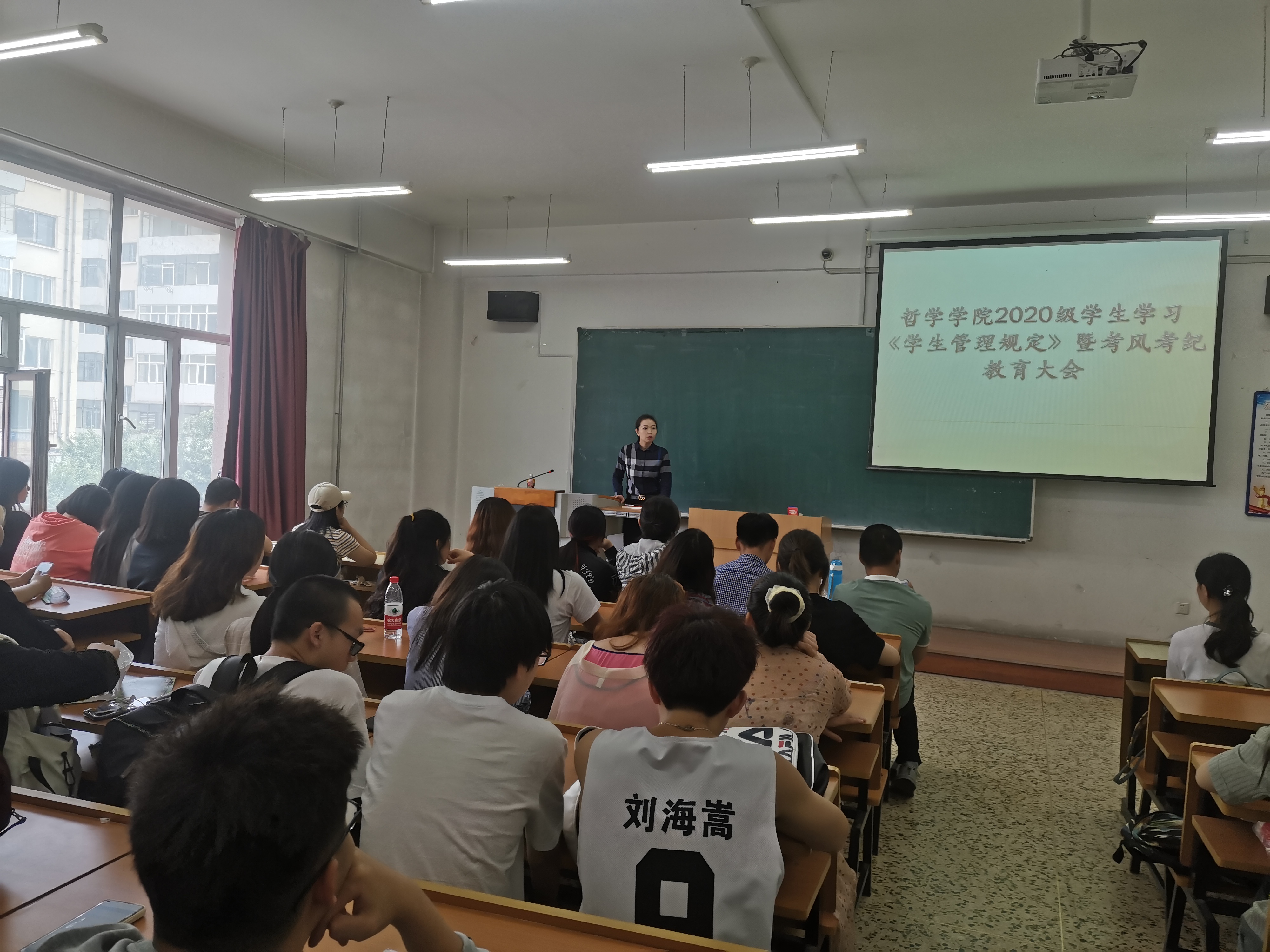 学生管理规定》关于纪律处分、课堂秩序、公寓管理规定等重要内容。在考风考纪方面,辅导员老师结合事例详细解读了考试违纪行为所对应的处罚措施,强调同学们一定要严格要求自己,严禁抱有侥幸心理。期末考试不仅是对同学们本学期学习成果的验收,更是对同学们人格品德的考验,希望同学们自觉遵守考试纪律,合理安排复习时间,做好备考工作。会上,同学们还签订了诚信承诺书。