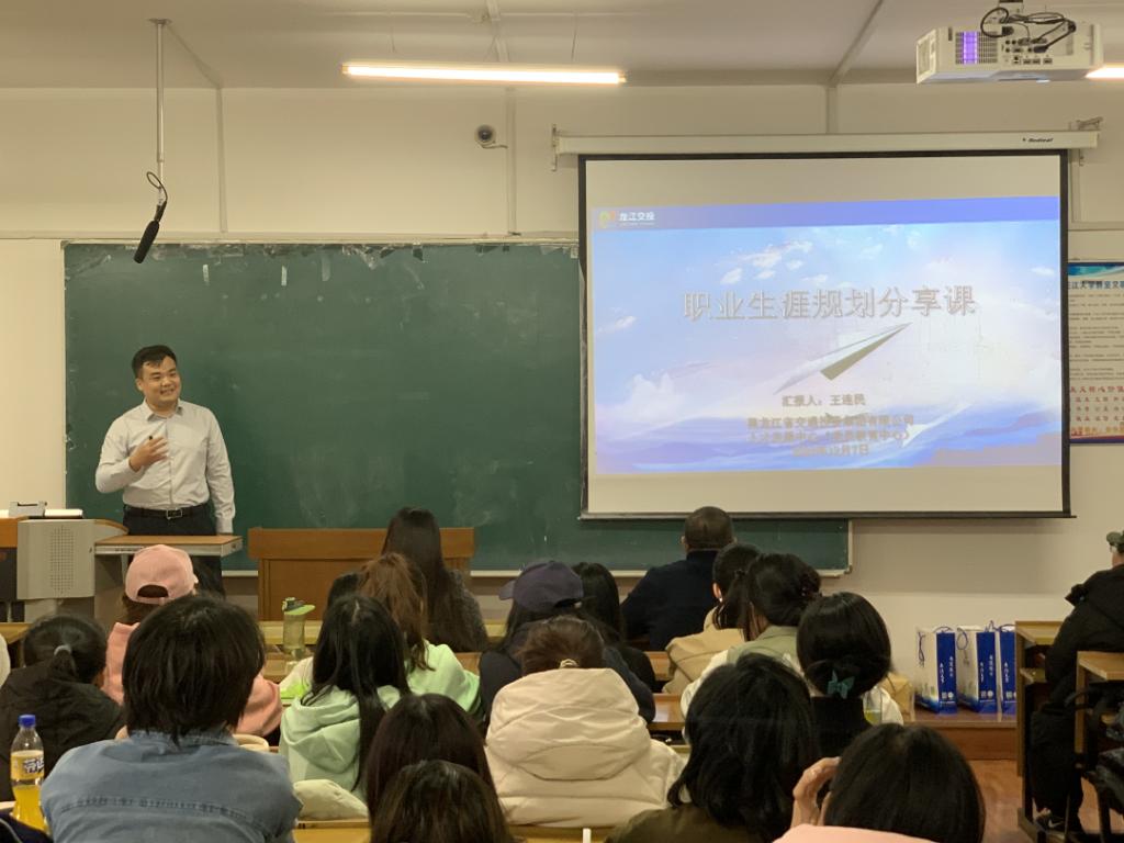 于2023年12月7日在汇文楼737教室举行2023级学生职业认知讲座。省交投集团人才发展中心(党员教育中心)主任王连民担任主讲嘉宾,51视频