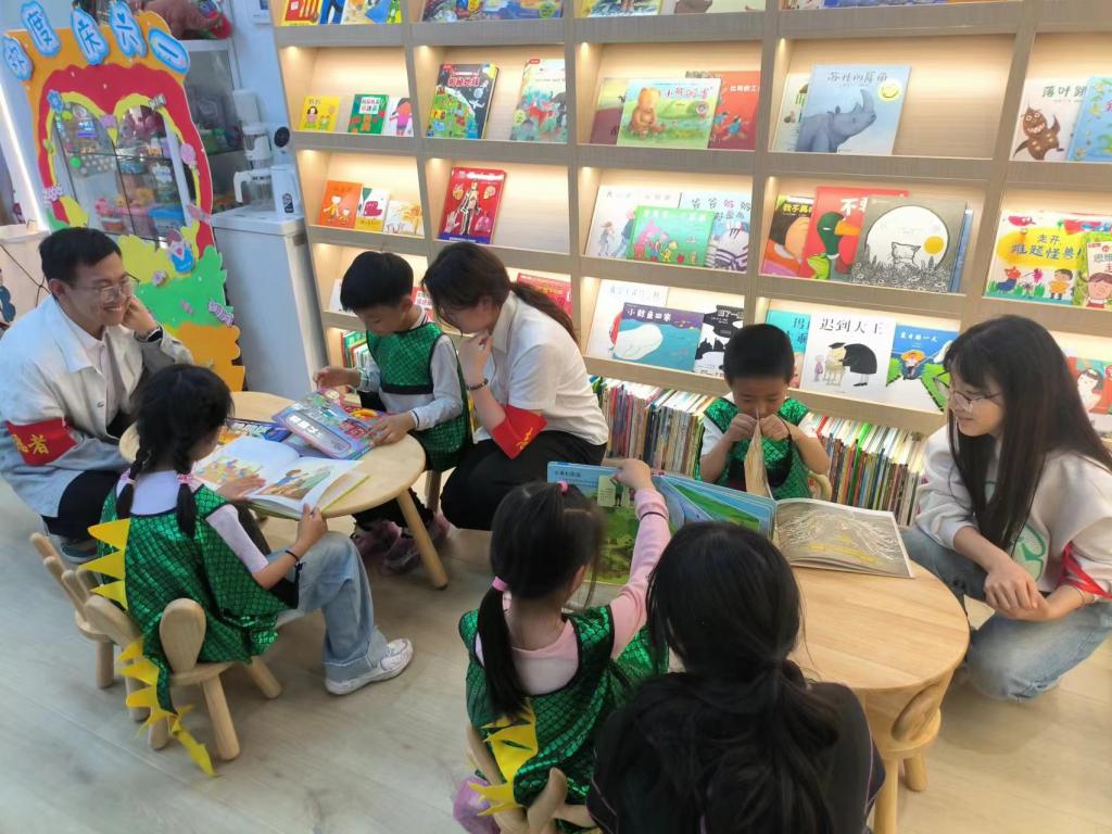 第六十九期发展对象组成学生志愿服务队走进金爵万象六楼的大Q小q光影读书馆,开展“科普大揭秘 点亮阅读之光”志愿服务活动,与小朋友们一同度过一段充满奇幻色彩的欢乐时光。