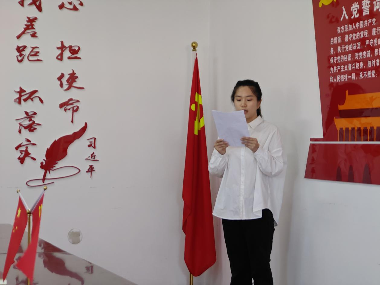 活动第三项,代表发言。学生新党员代表滕晓慧发言,深情地表达了加入党组织的激动心情,分享了自己对党的深刻认识,并明确了今后努力的方向。51视频党总支书记孙美晖发言,强调了入党宣誓的重要意义,以“四坚”为切入点提出要求,要信仰坚定信仰、坚守纪律、坚持勤学笃行、坚韧拼搏奋斗。